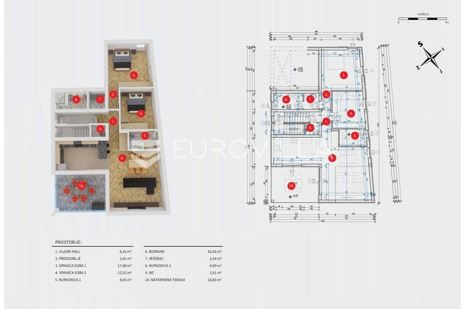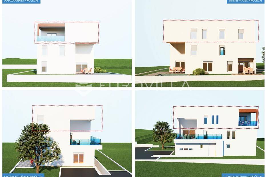 Vodice, NOVOGRADNJA, projekt stambene zgrade koja će biti građena prema najvišim standardima na tri etaže s ukupno 4 stambene jedinice. Useljenje travanj 2026. godine.STAN S4 - dvosoban stan na drugom katu zatvorene površine 96,65 m2, natkrivena terasa 18,65 m2. Pripadaju mu dva vanjska parkirna mjesta 12,50 m2 i 12,77 m2. Ukupno obračunski neto korisna površina iznosi 112,29 m2.Sastoji se od ulaznog prostora, dnevnog boravka s blagovaonicom i kuhinjom otvorenog tlocrta s izlazom na terasu, dvije spavaće sobe, dvije kupaonice i vešeraja.Vrhunska oprema: dizalica topline, klimatizirano, PVC stolarija, protuprovalna ulazna vrata, parket I klase, vrhunska keramika i sanitarna oprema…Nalazi se na atraktivnoj mikrolokaciji 400 metara od centra Vodica, plaže, te svih potrebnih sadržaja. Prodavatelj je tvrtka, te kupac na plaća porez na kupnju nekretnina.Za sve ostale informacije stojimo na raspolaganju.... Više na eurovilla.hr, ID: 122105