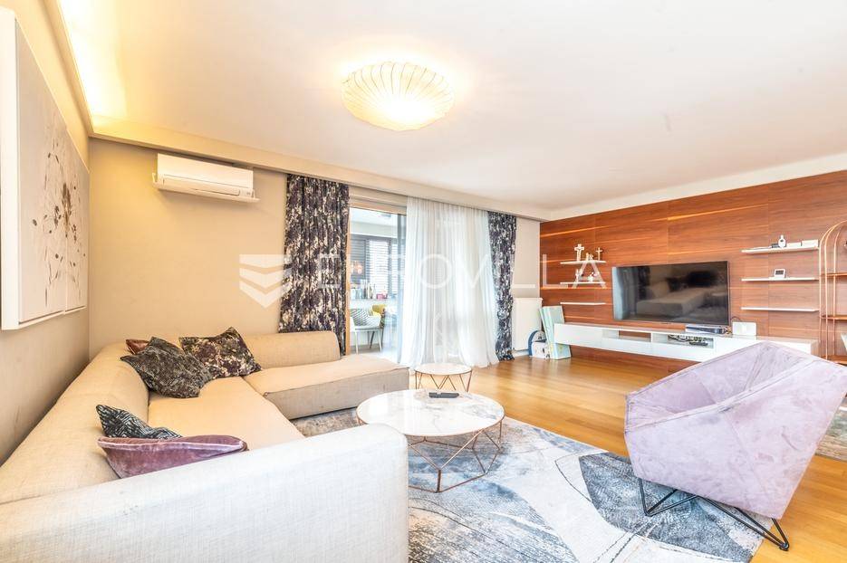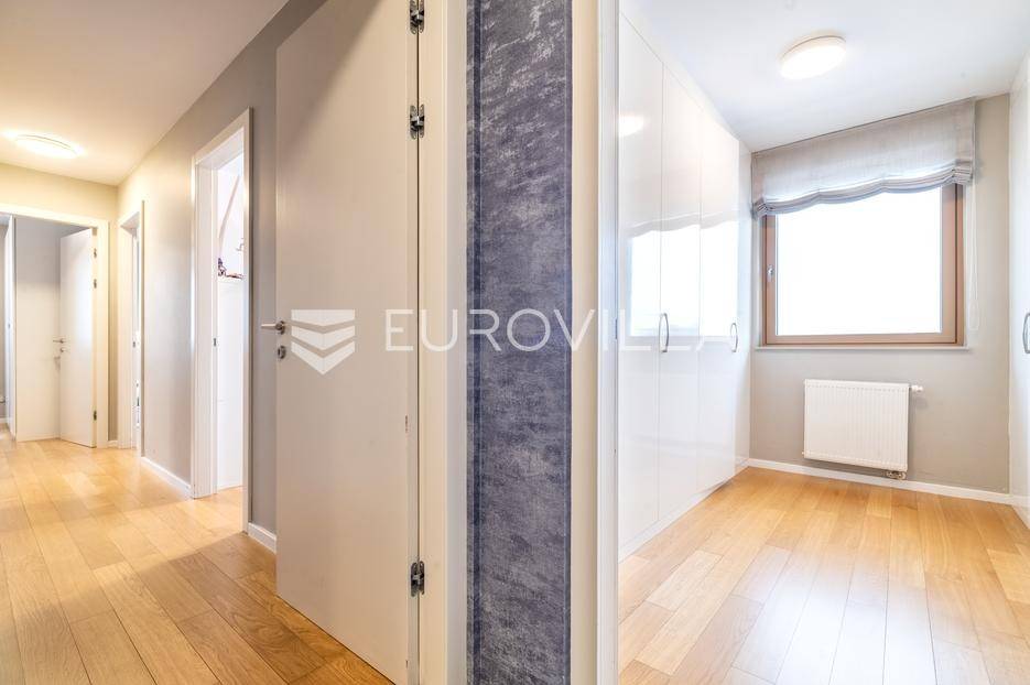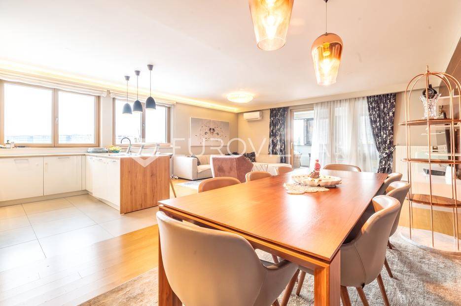 Zagreb, Trnje, Sigečica, prekrasan peterosoban stan smješten na 4.katu novogradnje.Sastoji se od ulaznog hodnika, prostranog dnevnog boravka s kuhinjom, blagovaonicom te izlazom na loggiu, četiri spavaće sobe te dvije kupaonice ukupne površine 123 m2.Pripada mu spremište 5,56 m2 (2,78) te dupla garaža za dva parkirna mjesta ukupne površine 31,92 m2 (23,94) koja su u cijeni.Stan se prodaje kompletno namješten sa svim aparatima. Nalazi se na odličnoj lokaciji u blizini svih važnih sadržaja (dječji vrtić u prizemlju zgrade, dućani, kafići, restorani) te je odlično prometno povezan.Za dodatna pitanja stojimo na raspolaganju.... Više na eurovilla.hr, ID: 122631