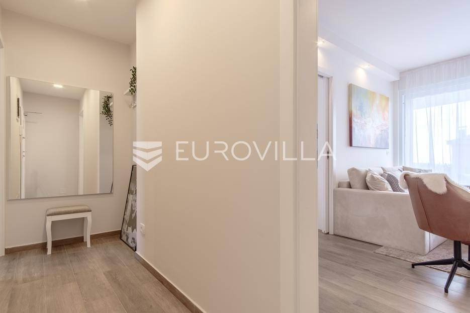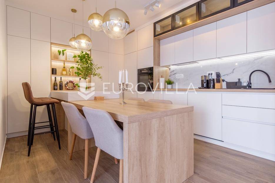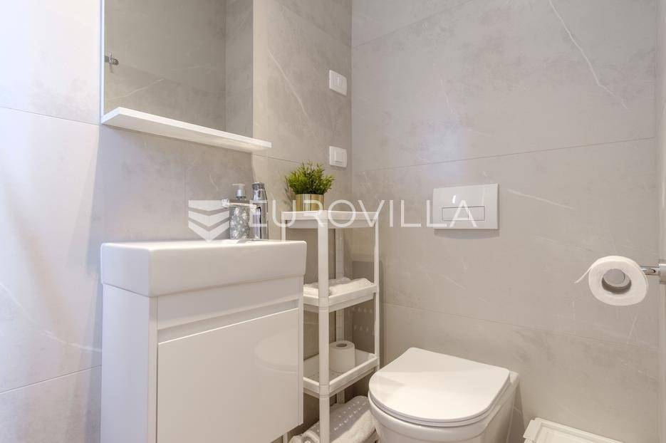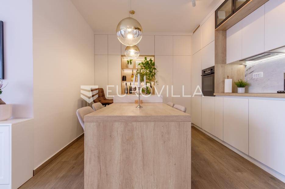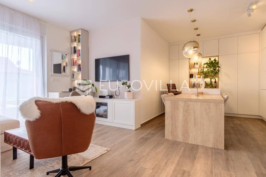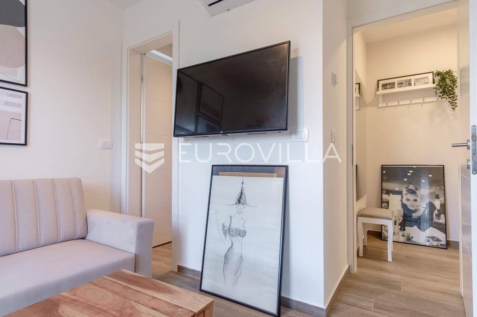 Prodaje se luksuzan stan na prvom katu stambene zgrade ukupne neto površine 65,67 m2, s pripadajuća dva parkirna mjesta, svaki površine 12,5 m2. Savršen spoj udobnosti i modernog dizajna čini ovaj stan izvrsnim izborom za sve koji traže kvalitativan životni prostor.Ulaskom u stan dolazite u hodnik koji vas vodi do jedne spavaće sobe s vlastitom kupaonicom, koja je trenutno preuređena u ured, no njena oprema omogućava jednostavnu prilagodbu za funkcionalnu spavaću sobu. Dnevni boravak s kuhinjom i blagovaonicom predstavlja otvoreni prostor za ugodan boravak i druženja, a iz njega se izlazi na prostranu natkrivenu osunčanu terasu koja nudi pogled na more – idealno za uživanje u jutarnjoj kavi ili opuštanje na svježem zraku.U nastavku se nalazi još jedna spavaća soba s vlastitom kupaonicom, iz koje također izlazite na natkrivenu terasu kroz veliku staklenu stijenu, stvarajući osjećaj otvorenosti i svjetlosti u cijelom stanu.Stan se prodaje potpuno opremljen i namješten, s pažljivo odabranim modernim namještajem rađenim po mjeri, koji se savršeno uklapa u prostor i pruža funkcionalnost i estetsku vrijednost. Namještaj je izrađen s ciljem optimalnog iskorištavanja prostora i omogućava vrhunski ugođaj.Za maksimalnu udobnost i energetske uštede, stan je opremljen podnim grijanjem koje se proteže kroz cijeli prostor, a svaka prostorija ima vlastiti termostat za precizno podešavanje temperature. Dodatno, u dnevnom boravku smješten je električni kamin s funkcijom grijanja, koji doprinosi atmosferi i udobnosti stana. Hlađenje je osigurano putem tri klima uređaja koji omogućavaju ugodan boravak u svim godišnjim dobima. Ugrađeni rekuperator zraka poboljšava kvalitetu života, omogućujući prirodnu cirkulaciju zraka i učinkovit prijenos topline ili hladnoće između unutarnjeg i vanjskog prostora, uz minimalnu potrošnju energije.Stan se nalazi na odličnoj lokaciji, svega 900 metara od mora, a svi potrebni sadržaji za svakodnevni život dostupni su na samo nekoliko minuta pješice ili autom.Ovaj stan posjeduje uporabnu dozvolu i spreman je za useljenje te predstavlja izuzetnu priliku za one koji žele uživati u modernom, luksuznom životu u blizini mora.Za dodatne informacije, odgovore na pitanja ili organizaciju razgledavanja, slobodno nas kontaktirajte.... Više na eurovilla.hr, ID: 125898