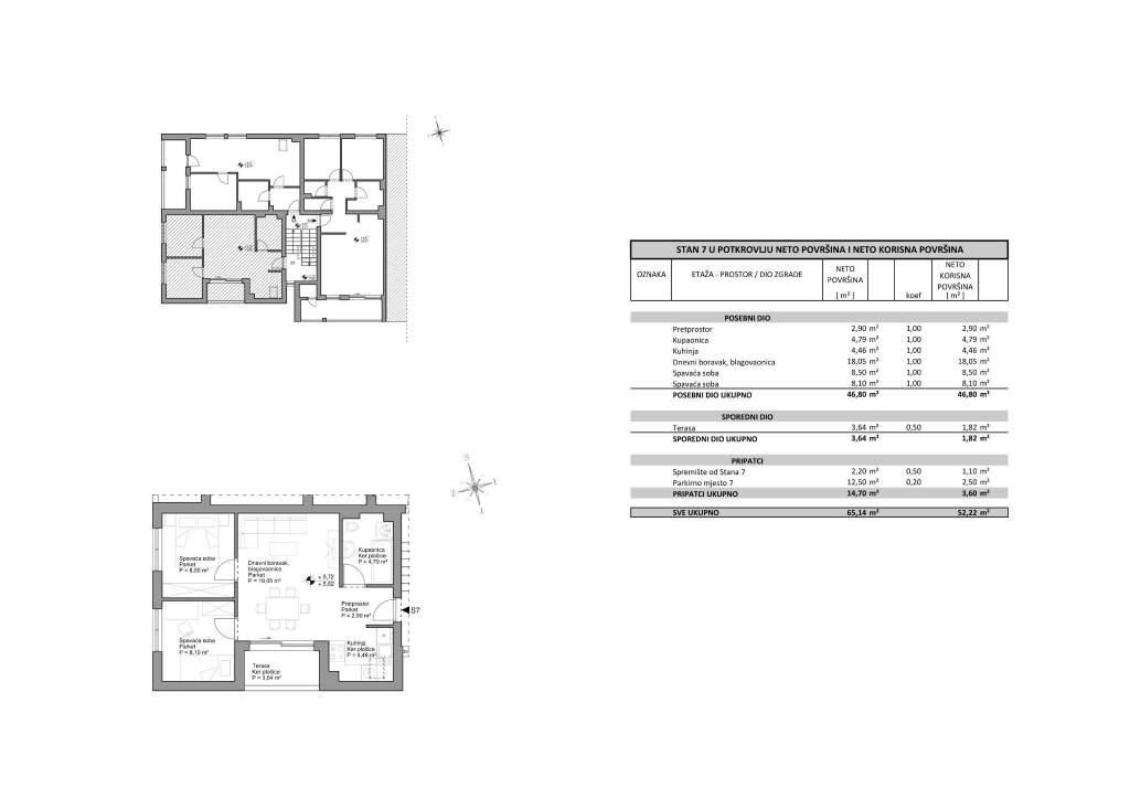 Brdovec, Gornji Laduč, NOVOGRADNJA, prekrasna lokacija za život okružena zelenilom i prirodom, a opet u blizini centra grada. Odlične dvije moderne zgrada, ukupno 3 etaže i 18 stanova, gradit će se prema visokom standardima. Useljenje ljeto 2026. godine.Stan Z1- S7 - trosoban stan u potkrovlju, zatvorene površine 46,80 m2 koji se sastoji od pretprostora, dnevnog boravka s kuhinjom i blagovaonicom otvorenog tlocrta s izlazom na terasu 3,64 m2, dvije spavaće sobe i kupaonice. Pripada mu spremište u podrumu 2,20 m2 i vanjsko parkirno mjesto 12,50 m2. Ukupno obračunska neto korisna površina 52,22 m2.Kvalitetna oprema: PVC stolarija s komarnicima, klimatizirani, protuprovalna ulazna vrata, laminat, vrhunska keramika i sanitarna oprema...Izuzetno dobra i brza prometna povezanost cestom ili željeznicom sa Zagrebom i Zaprešićem. Blizina škole, vrtića, dućana. Idealan stan i lokacija za kvalitetan i miran obiteljski život.Za sve ostale informacije stojimo na raspolaganju.... Više na eurovilla.hr, ID: 128685