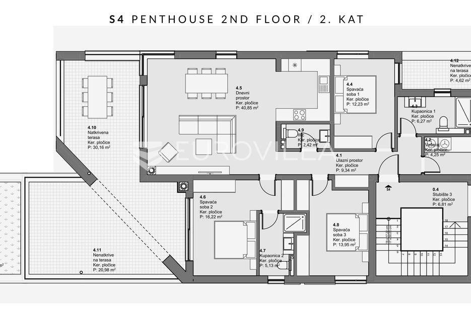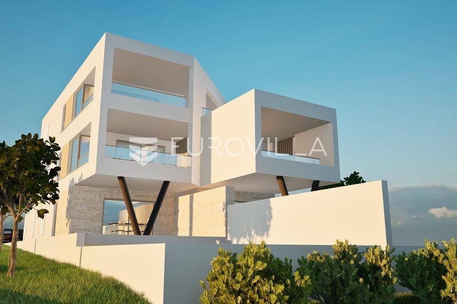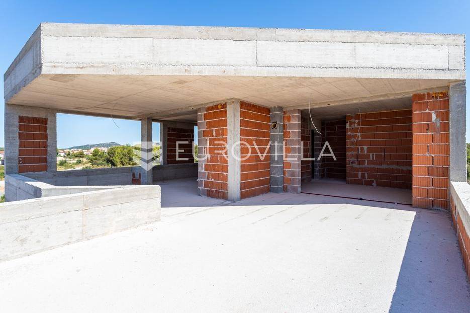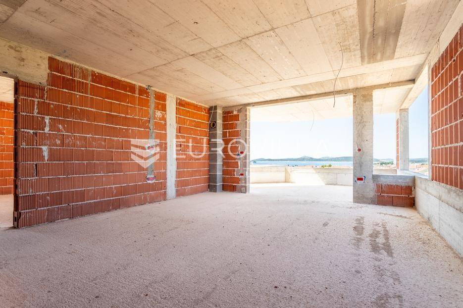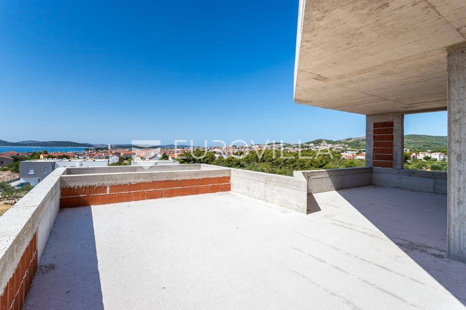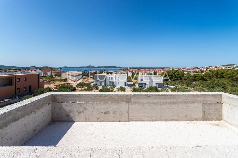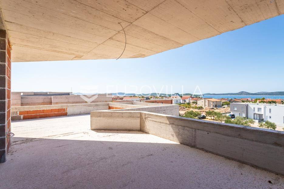 Vodice, prekrasan dvosoban penthouse s pogledom na more, neto korisne površine 143,31 m². Nalazi se na drugom katu u moderno dizajniranoj zgradi sa ukupno 4 stana. Površina zatvorenog prostora iznosi 110,66 m².Stan se sastoji od dnevnog boravka s kuhinjom i blagovaonicom, tri spavaće sobe od kojih jedna ima privatnu kupaonicu, jedne zasebne kupaonice, te vešeraja. Iz boravka se izlazi na veliku natkrivenu terasu s pogledom na more. Svaka prostorija ima klima uređaj, a kupaonice imaju ugrađeno podno grijanje.Uz stan dolazi i jedno parkirno mjesto, uz mogućnost kupnje dodatnih parkirnih mjesta. Udaljenost od mora i centra Vodica je 900 metara. Zgrada je trenutno u izgradnji, te je planirani završetak na jesen 2026. godine.Za sve ostale informacije stojimo na raspolaganju.... Više na eurovilla.hr, ID: 145138