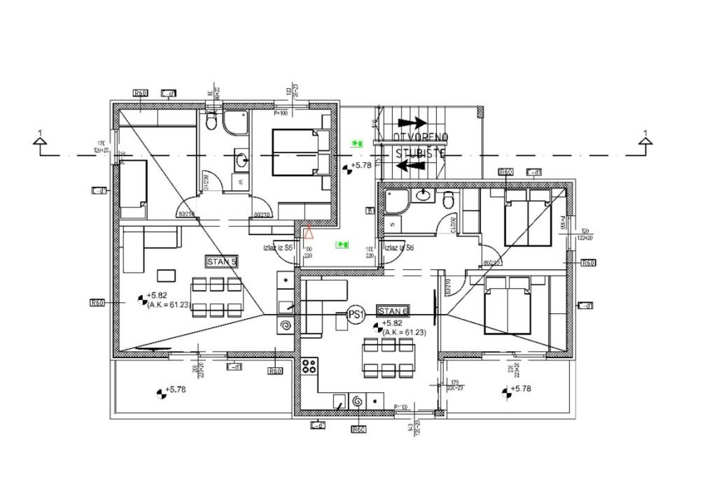 U neposrednoj blizini povijesnog grada Trogira, gradi se stambeni objekt sa 7 stanova južne orijentacije na pješačkoj udaljenosti od mora od cca 900 m. Zahvaljujući izoliranoj poziciji, lokacija objekta pruža izuzetan mir.Dvosoban stan S6 na drugom katu neto korisne površine 54,16 m2 sastoji se od ulaznog prostora, kuhinje, blagovaonice, dnevnog boravka, kupaonice, dvije spavaće sobe, i natkrivene terase površine od 7,5 m2 .Svi stanovi će biti opremljeni klima uređajima i podnim grijanjem u kupaonicama. Podne obloge će biti od keramičkih pločica. Na prozorima i vratima će biti postavljena PVC stolarija, troslojna stakla a vanjska termo izolacija će biti od 8 cm stiropora.U tijeku izgradnje postoji mogućnost individualnih dogovora oko uređenja interijera.Svaki apartman ima na raspolaganju 1 parking mjesto uključeno u cijenu.Ukupna neto korisna površina stana sa svim pripadcima iznosi 57,28 m2.Očekivani početak radova je kraj 2025 godine a useljenje krajem 2027 godine.Investitor je fizička osoba a način plaćanja je: rezervacija min 5.000 eura / 30 % prilikom potpisa predugovora / 30 % nakon završetka konstrukcijskih radova / 20 % nakon završetka fasade / 15 % nakon završetka unutrašnjosti / 5 % nakon ishođenja uporabne dozvole.Dodatne informacije - udaljenosti od važnijih lokacija:Plaža: 900 m / Trogir: 1400 m / zračna luka: 4 km / Split: 30 kmKupovina: 500 m / restoran: 800 m / ljekarna: 500 m / banka: 500 mZa sva dodatna pitanja stojim na raspolaganju.... Više na eurovilla.hr, ID: 145804