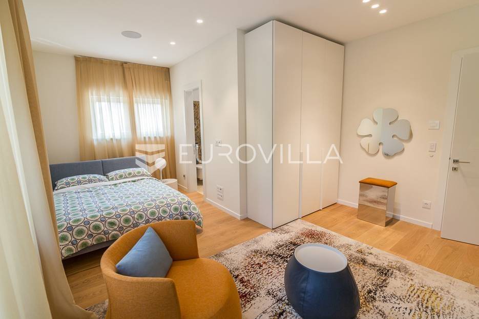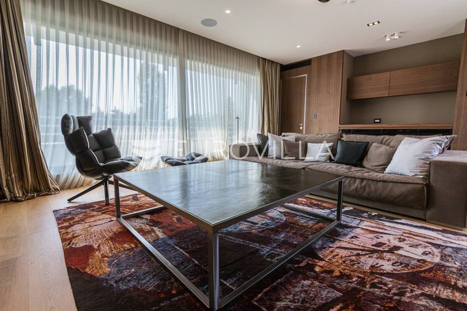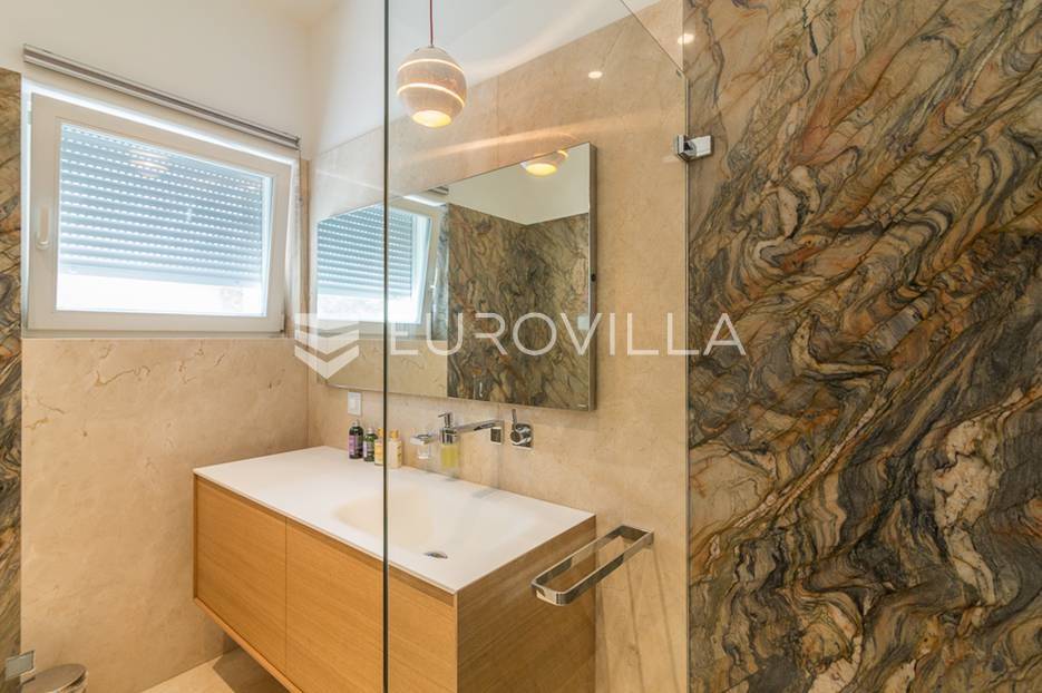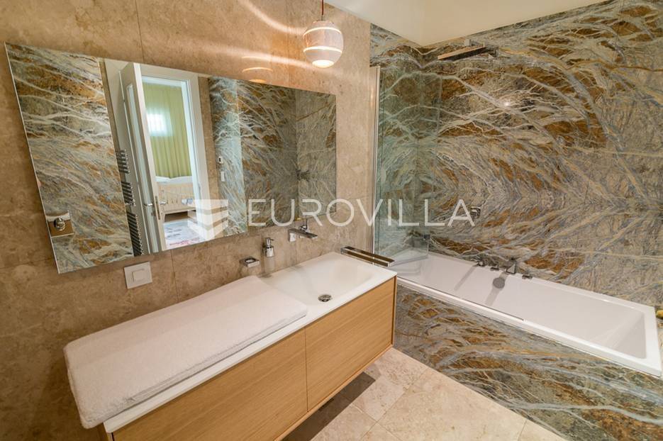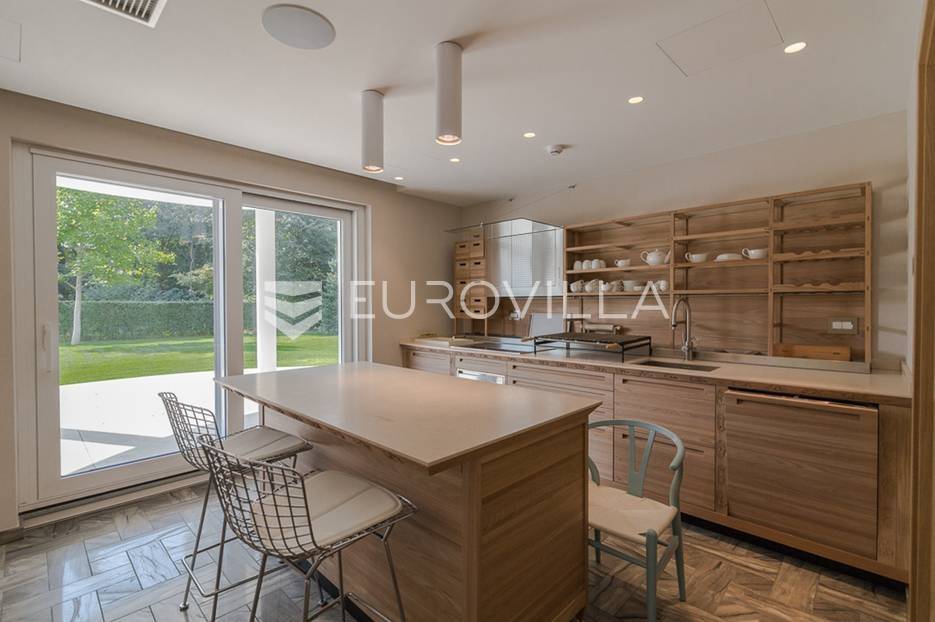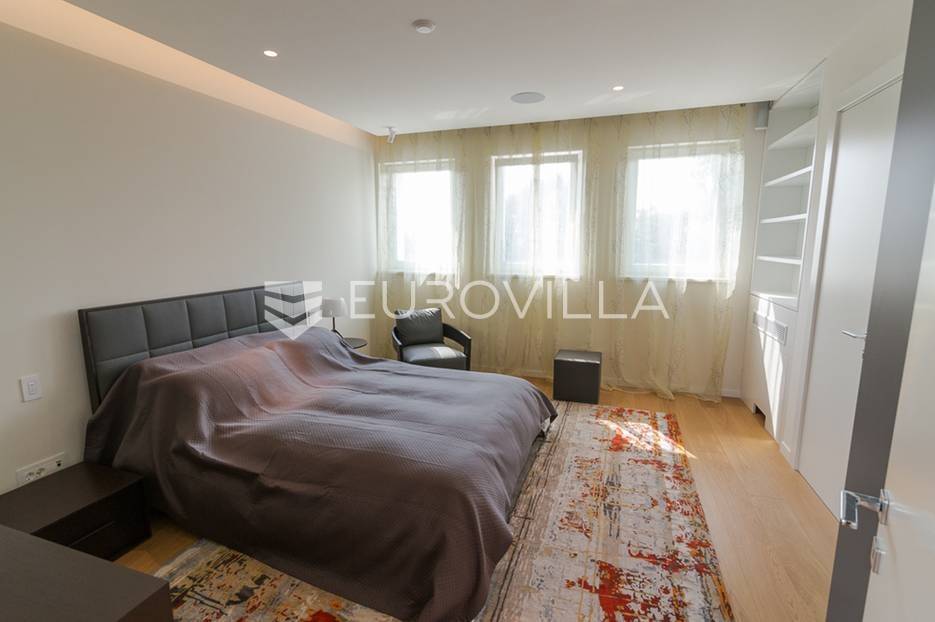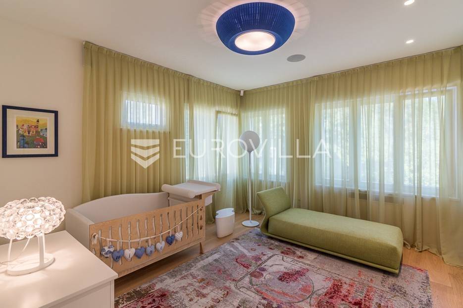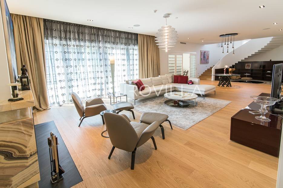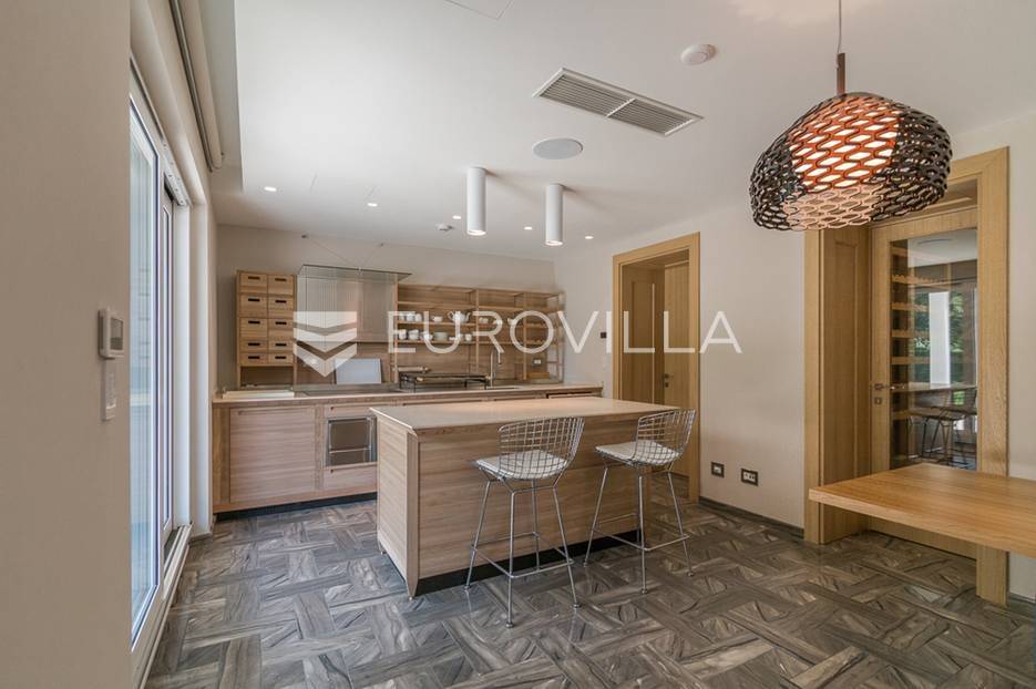 Tuškanac, luksuzna obiteljska vila na najljepšoj i najskupljoj lokaciji u Zagrebu.Razvedena u četiri etaže, smještena uz sjeverni rub parcele kako bi se prostorije za dnevni boravak što više orjentirale prema jugu i prema vrtu.Podrum: strojarnica, toalet, vešeraj, ulaz za poslugu, kotlovnica, jacuzzi, finska i turska sauna, teretana, ljetna kuhinja, vinski podrum i mali boravak sa izlazom na vrt, bazen i ljetnu kuhinju...Prizemlje: ulazni hodnik, ogroman dnevni boravak s čitaonicom, blagovaonica, otvoreni prema terasi iz koje se silazi u vrt, kuhinja, toalet, garderoba.Kat: galerija, 2 dječje sobe s kupaonicama, prostrana master spavaća soba s garderobom, kupaonicom i terasom.II kat: gostinjska soba s kupaonom, wc, terasa i drugi dnevni boravak te radna soba / safe room.Krov: ravan i uređen sa jacuzziem i pogledom na cijeli Zagreb.Kroz cijelu vilu proteže se monumentalno spiralno stubište te lift.Ostale informacije na upit.... Više na eurovilla.hr, ID: 168870
