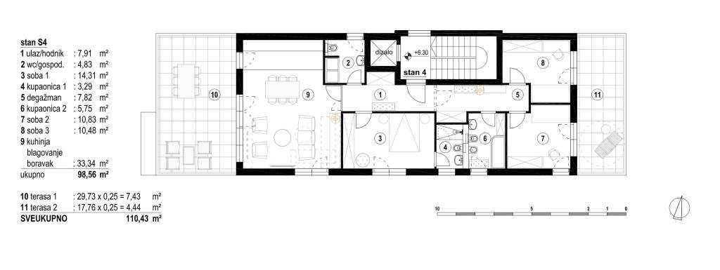 Zagreb, Srebrnjak, luksuzan četverosoban stan smješten na drugom katu ekskluzivne novogradnje na idealnoj lokaciji, 110,43 m2.Sastoji se od ulaznog hodnika, prostranog dnevnog boravka s kuhinjom, blagovaonicom te izlazom na terasu, tri spavaće sobe, od kojih je jedna master s vlastitom kupaonicom, a preostale dvije s izlazom na prekrasnu terasu s pogledom na zelenilo, dodatne kupaonice, gostinjskog toaleta te degažmana. Ukupna zatvorena površina stana je 98,56 m2.S obzirom da je početak gradnje predviđen za ljeto 2026.godine moguće su manje izmjene u tlocrtu. Uz stan je uključeno jedno garažno parkirno mjesto (14,58 m2), jedno vanjsko parkirno mjesto (13,50 m2) te spremište (5,43 m2) koji su u cijeni.Luksuzna novogradnja s vrhunskom opremom (armirano betonska konstrukcija, ploča mineralne vune minimalne debljine 15 cm, troslojna stakla, alu stolarija, hrastov parket 1.klase po izboru, sanitarije 1.klase, dizalo). Sustav grijanja putem dizalice topline, podno grijanje te klima uređaj u svakoj prostoriji.Planirano useljenje 09/2027Za dodatna pitanja stojimo na raspolaganju.... Više na eurovilla.hr, ID: 186214