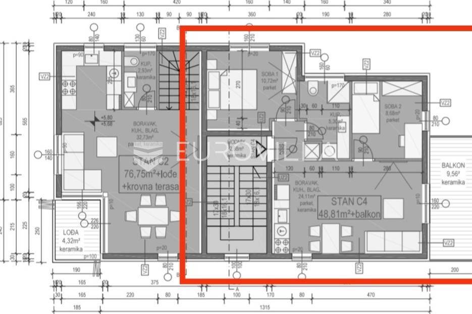 U popularnom odmaralištu sjeverne Dalmacije, mjestu Vir grade se četiri stambena objekta s 12 apartmana na pješačkoj udaljenosti od plaže od 220 m.Zgrade oznaka A, B, C i D se sastoje od 4 apartmana po objektu raspoređenih na 3 etaže (prizemlje, prvi kat i drugi kat) uz iskoristivu krovnu terasu koja se prodaje odvojeno:Objekt C - Apartman C4 na drugom katu površine 51,2 m2 orijentacije Sjeverozapad.Apartman C4 se sastoji od dnevnog prostora površine 24 m2 (kuhinja, blagovaonica i dnevni boravak), spavaće sobe 1 površine 10,7 m2, spavaće sobe 2 površine 8,6 m2, kupaonice površine 5,3 m2 i terase površine 9,5 m2.Svi apartmani će biti opremljeni klima uređajima u dnevnom prostoru. Podne obloge će biti od keramičkih pločica. Stakla će biti troslojna a vanjska izolacija će biti od 10 cm kamene vune.U fazi izgradnje još je moguće dogovarati uređenje interijera.U cijeni apartmana nije uključeno parkirno mjesto i ostava.Cijena parking mjesta - 8.000 euraCijena ostave - 4.000 euraNačin plaćanja: 30% prilikom potpisa predugovora / 30% pri završetku betonskih radova / 30% pri završetku fasade i unutrašnjosti / 10% nakon ishođenja uporabne dozvole.Predviđeni završetak grubih građevinskih radova je do 01.06.2026 a useljenje do ljeta 2027 godine.Za sva dodatna pitanja stojim na raspolaganju.... Više na eurovilla.hr, ID: 236825