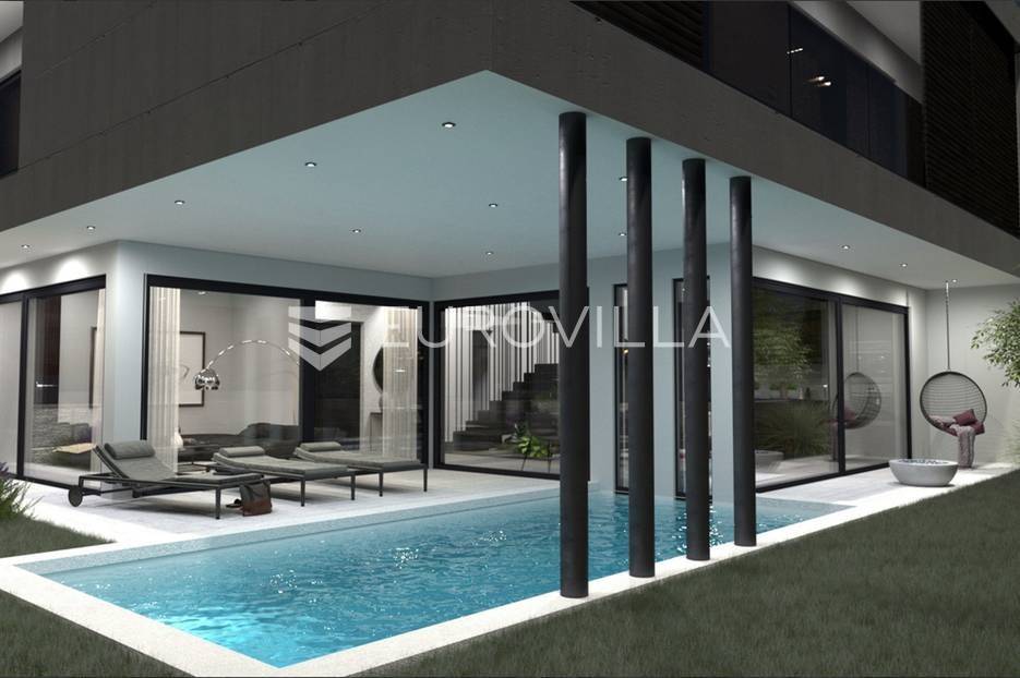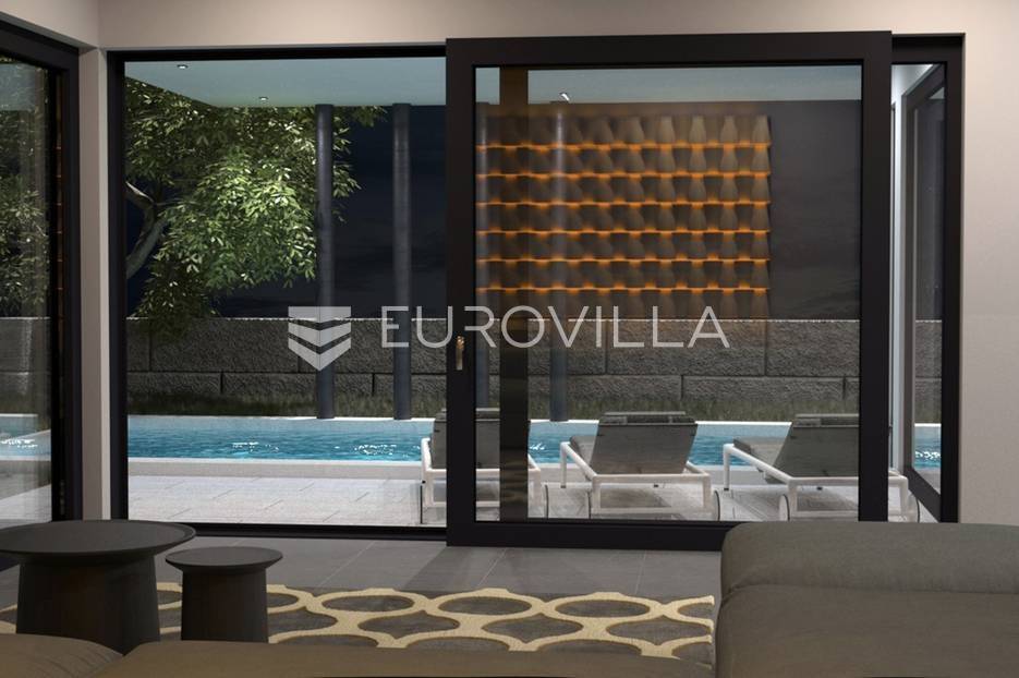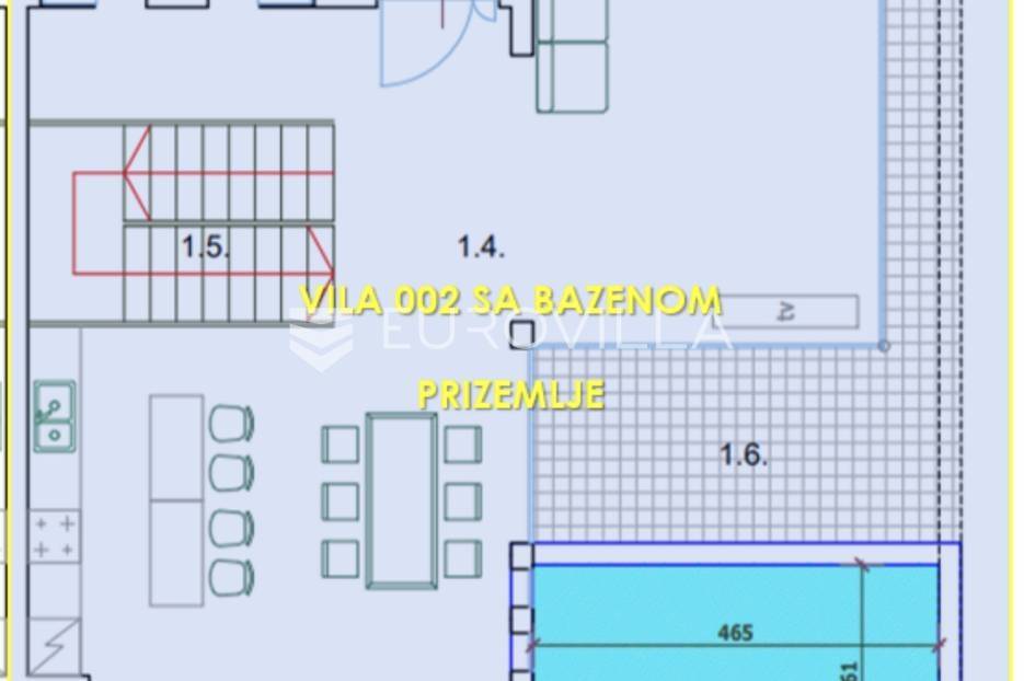 Fažana, Istra, 164 m2 vila s bazenom prvi red do mora s pogledom na more.Na prodaju je moderna luksuzna vila koja je zapravo dio dupleksa savršeno projektiranog tako da omogućuje kompletnu privatnost.Na prizemlju nalazi se jedna kupaonica, ostava, kuhinja s blagovaonicom, dnevni boravak s izlazom na terasu i bazen ukupne neto površine 81.01 m2. Na prvom katu nalazi se predsoblje, tri spavaće sobe sa svojim kupaonicama te dvije natkrivene terase ukupno neto površine 82,47 m2. Ukupno površina - 163.48 m2.Implementacija podnog grijanja u prostorima dnevnog boravka i kupatila, hlađenje i klimatizacija u svim prostorijama vile i grijanje modernih sustava toplinskih pumpi.Završetak gradnje i useljenje planira se za kraj 2023 godine.Za više informacija stojim na raspolaganju.... Više na eurovilla.hr, ID: 293923