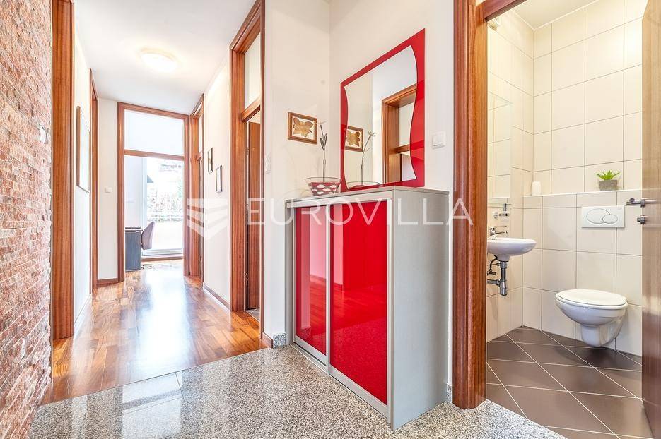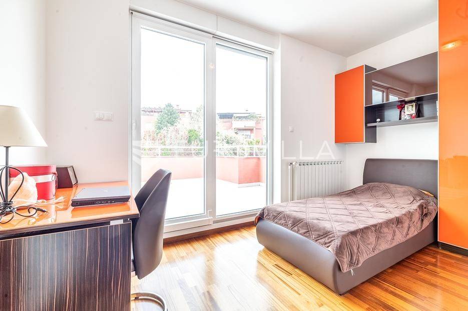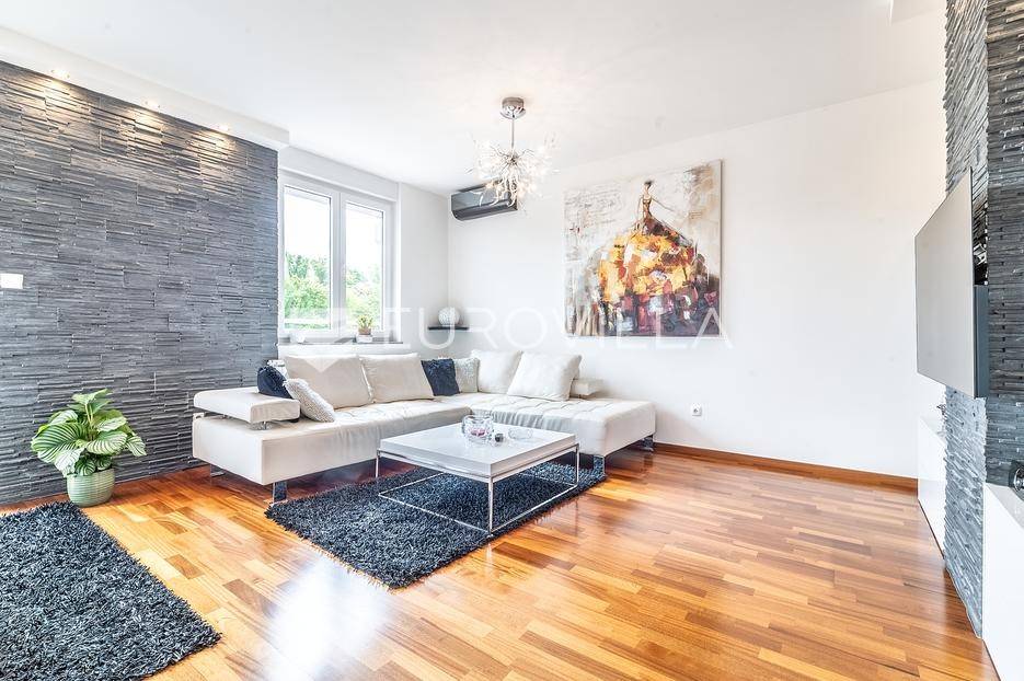 Remete, peterosoban stan površine 131 m2 na 2. katu kvalitetno građene i održavane zgrade iz 2010 godine bez lifta.Sastoji se od ulaznog hodnika, prostranog dnevnog boravka, kuhinje i blagovaonice otvorenog tlocrta s izlazom na terasu natkrivenom pomičnom pergolom s koje se pruža prekrasan pogled na zelenilo, četiri spavaće sobe od koje dvije imaju izlaz na drugu terasu i dvije kupaonice. Stanu pripada garaža, vanjsko parkirno mjesto te ostava u podrumu. Prodaje se potpuno namješten.Idealan tlocrt, klimatiziran, etažno plinsko grijanje...Nalazi se u uvučenoj ulici i neposrednoj blizini svih potrebnih sadržaja (škola, vrtić trgovina, restorani, barovi, sport…) na odlično prometno povezanoj lokaciji - okružen stambenim nekretninama.Sve ostale informacije na upit.... Više na eurovilla.hr, ID: 317001