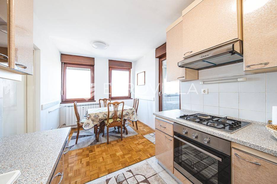 Trešnjevački trg, namješten dvosoban stan zatvorene površine 56 m2 na drugom katu odlično održavane zgrade.Sastoji od ulaznog hodnika, dnevnog boravka, kuhinje, blagovaonice, ostave, jedne spavaće sobe te loggie. Kuhinja je ugrađena sa svim potrebnim uređajima. Toplana, klimatiziran. Mogućnost najma garažnog mjesta 100 eura/mjesečno. Idealna lokacija u neposrednoj blizini svih potrebnih sadržaja. Ostale informacije na upit.... Više na eurovilla.hr, ID: 317278