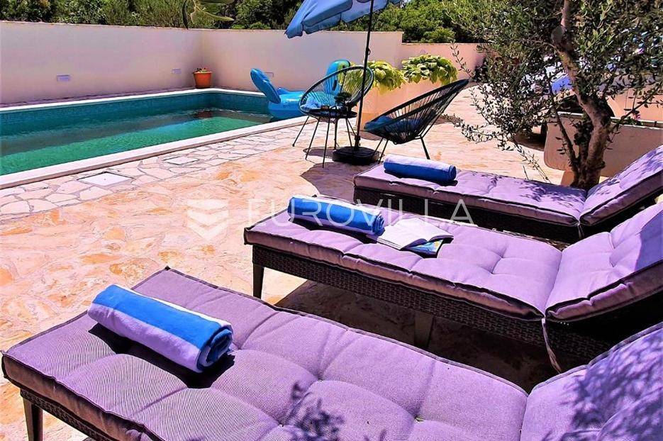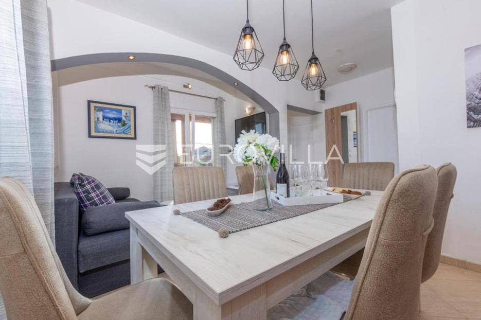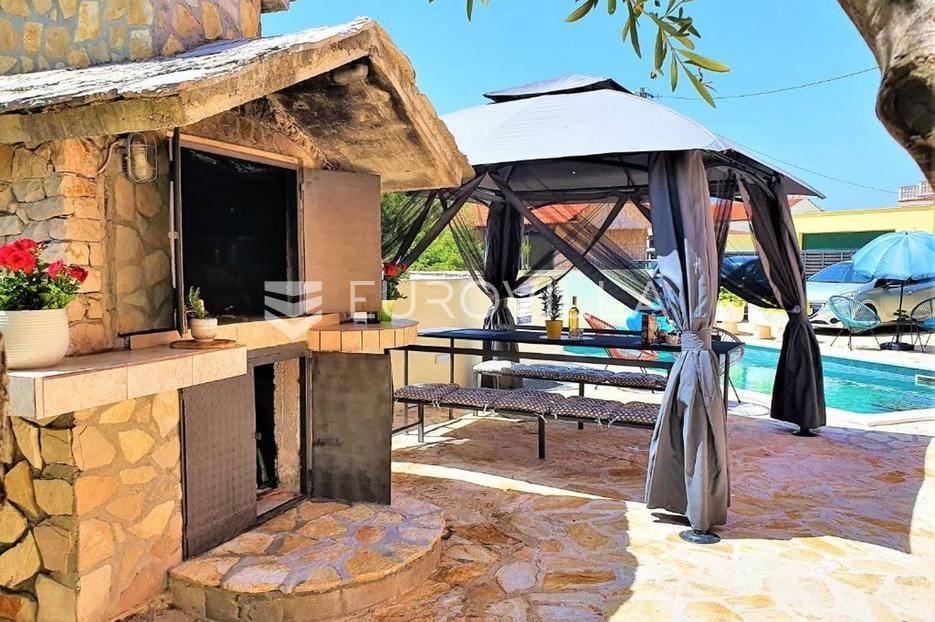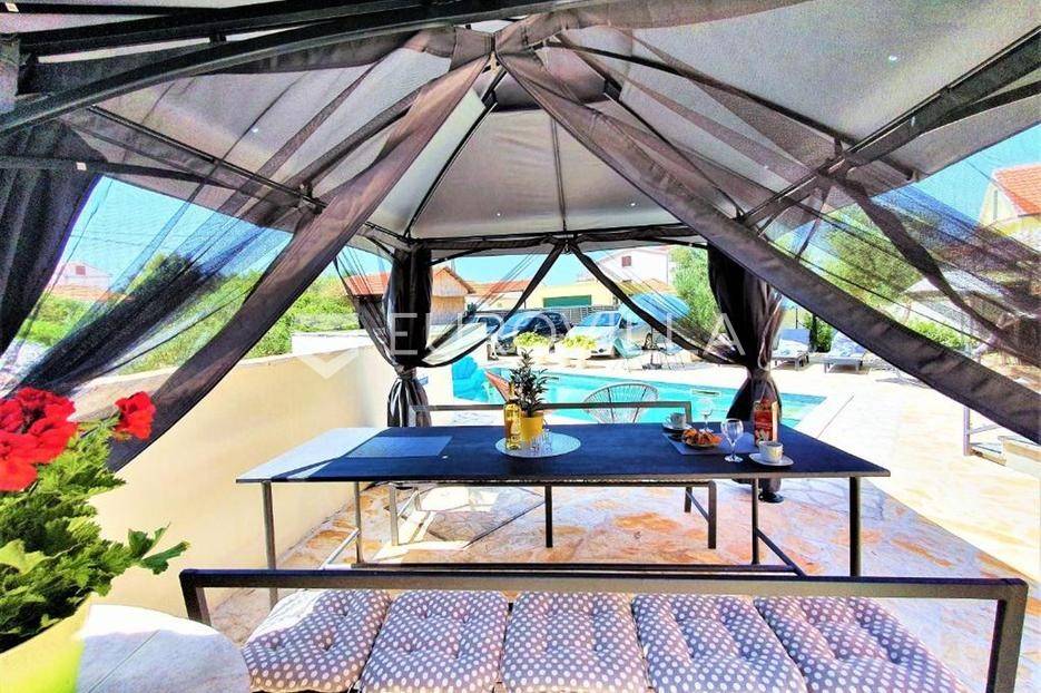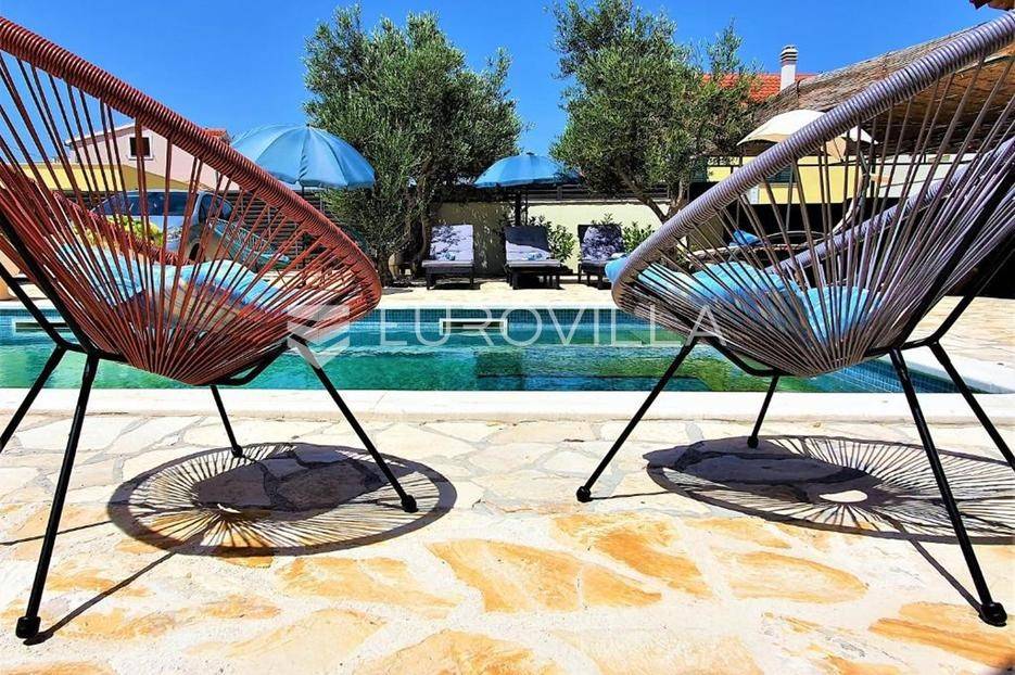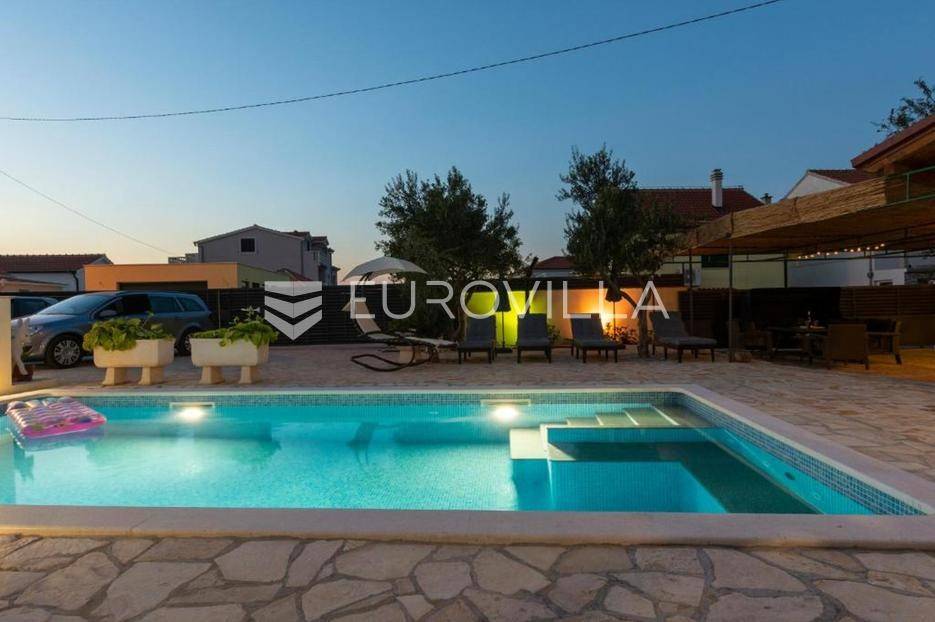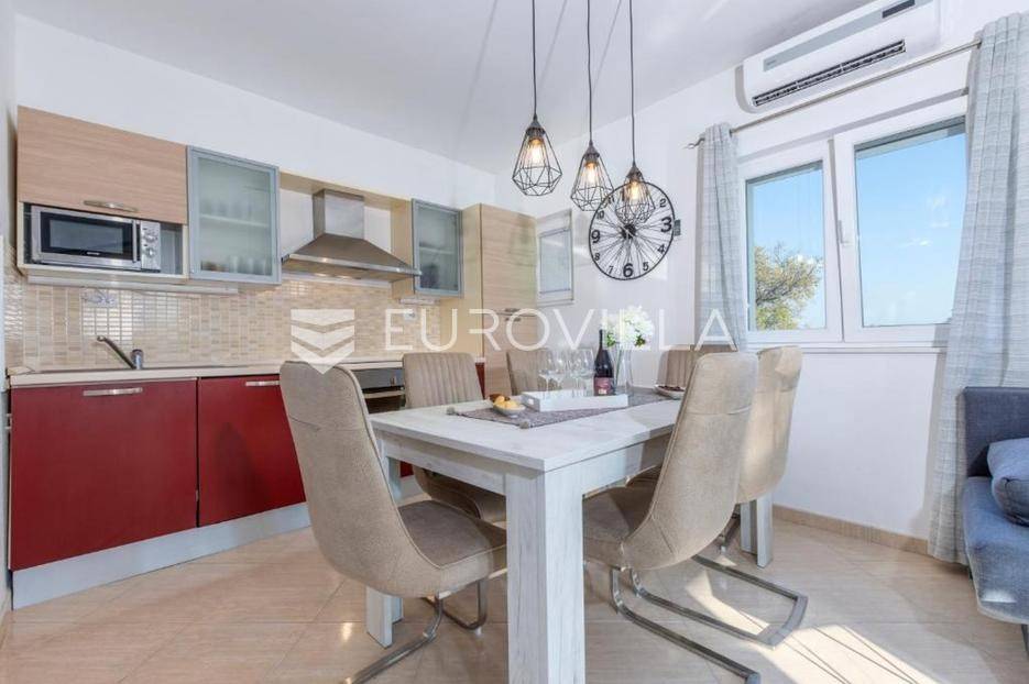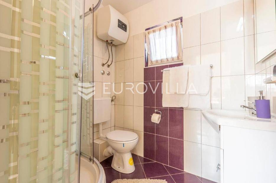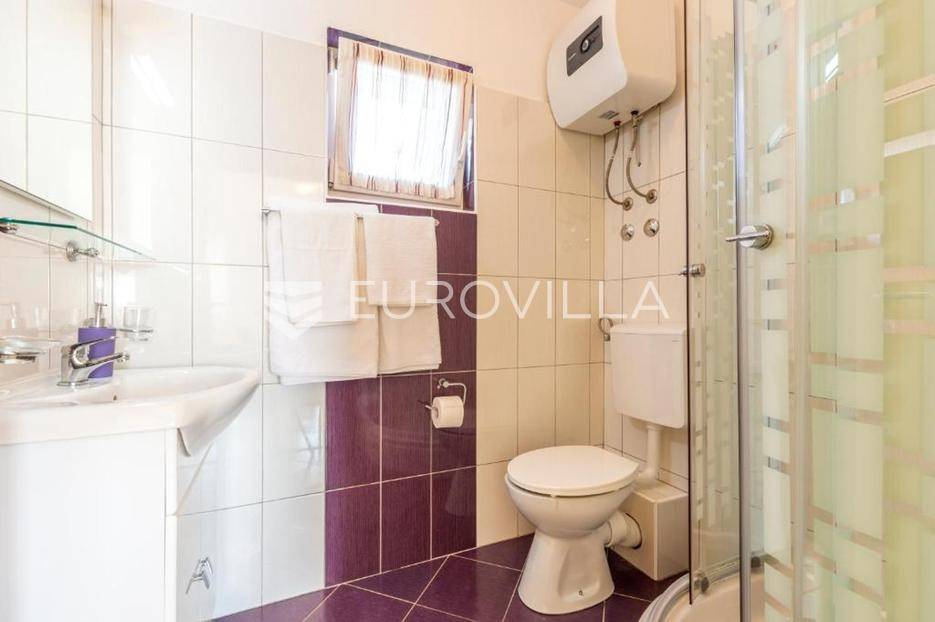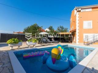Zečevo Rogozničko, prekrasna apartmanska kuća s bazenom, ukupne površine 236,46 m² izgrađena na parceli od 520 m². Prodaje se potpuno namještena i opremljena, te idealna za odmor ili turistički najam.Kuća se sastoji od 3 etaže. U prizemlju su dva manja apartmana, svaki s jednom spavaćom sobom, kupaonicom te dnevnim boravkom s kuhinjom i blagovaonicom. Osim dva apartmana, u prizemlju je i igraonica sa stolom za biljar, pikadom, konzolom za video igre i ostalim sadržajima. Vanjskim stepenicama dolazi se na prvi kat na kojem se nalazi apartman s dvije spavaće sobe, od kojih jedna ima privatnu kupaonicu, jedne zasebne kupaonice, te dnevnog boravka s kuhinjom i blagovaonicom. Iz boravka se izlazi na prostranu natkrivenu terasu. Na drugom katu nalaze se još dva studio apartmana, od kojih se svaki sastoji od dnevnog boravka s kuhinjom i blagovaonicom, te kupaonice i terase s pogledom na more.Oko kuće se prostire lijep vrt u kojem je komin, te veliki bazen i prostor za sunčanje. Kuća ima 6 parkirnih mjesta, od kojih su dva natkrivena. Mikrolokacija kuće je odlična, na jako mirnom mjestu, a opet samo 500 metara od mora.Sve ostale informacije na upit.... Više na eurovilla.hr, ID: 362962