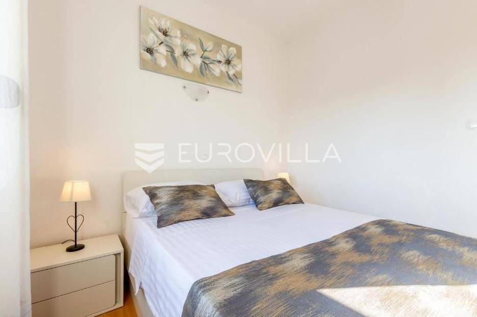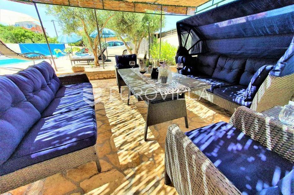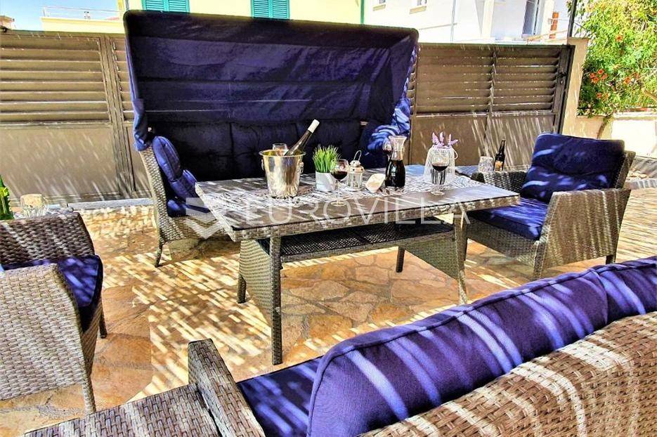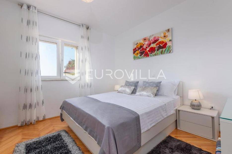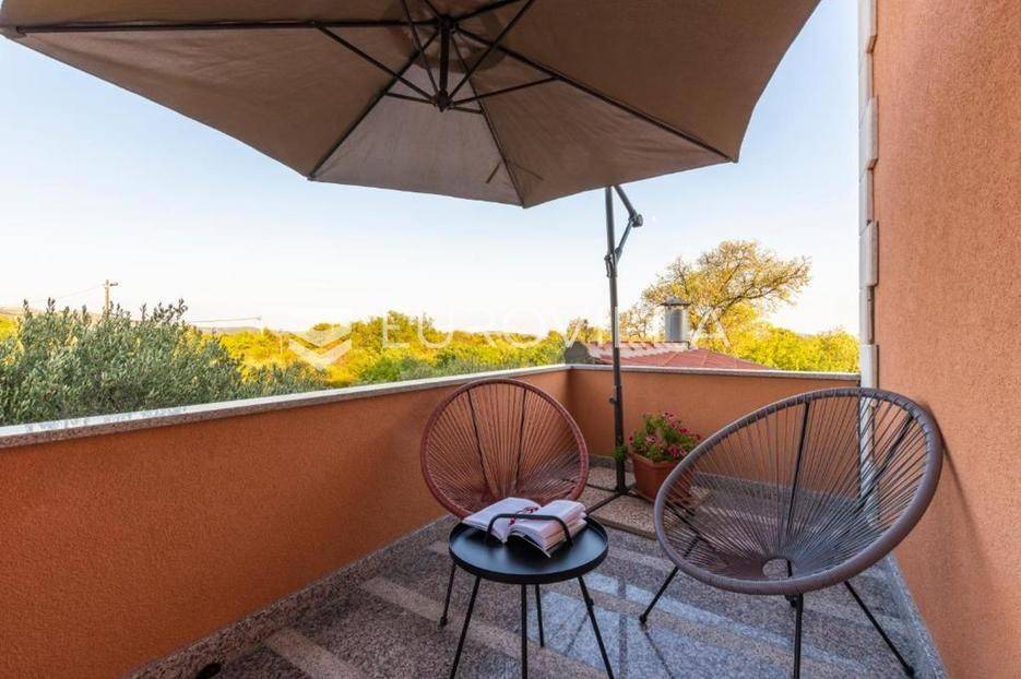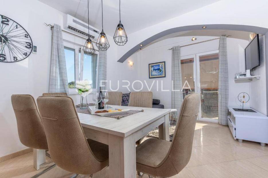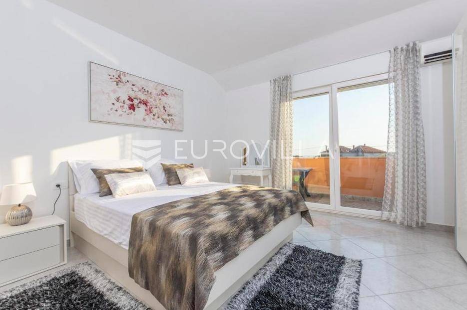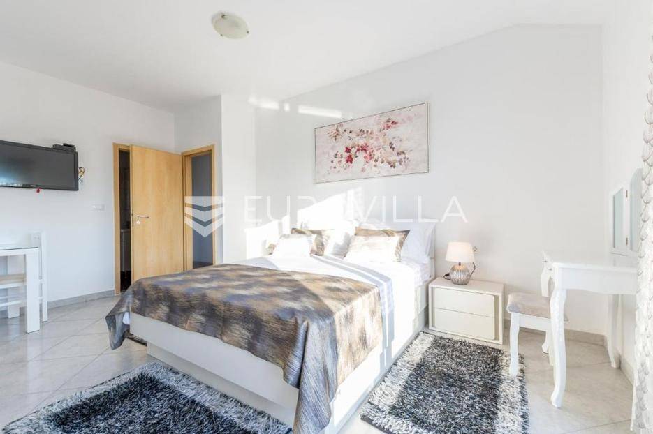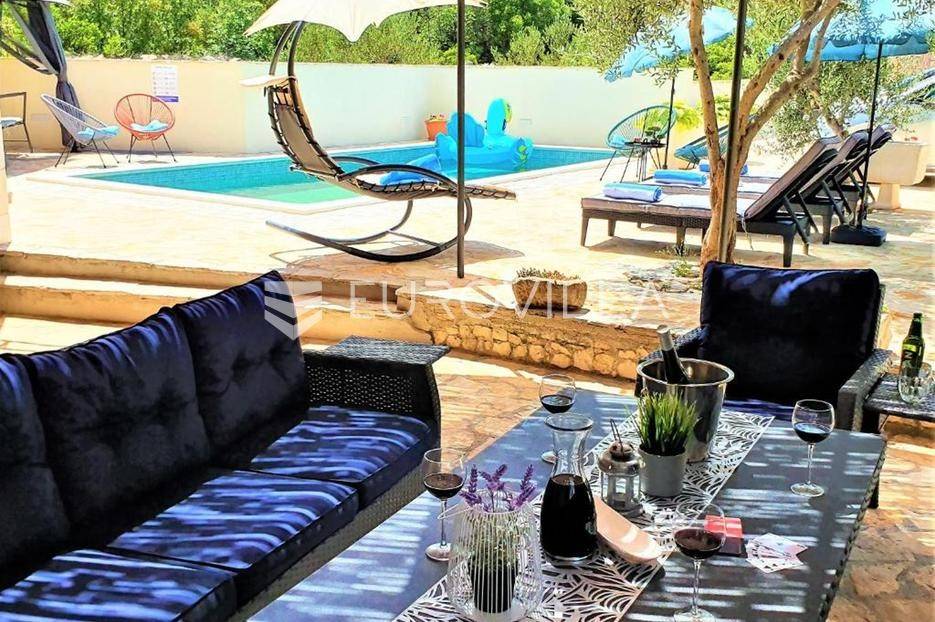 Zečevo Rogozničko, prekrasna apartmanska kuća s bazenom, ukupne površine 236,46 m² izgrađena na parceli od 520 m². Prodaje se potpuno namještena i opremljena, te idealna za odmor ili turistički najam.Kuća se sastoji od 3 etaže. U prizemlju su dva manja apartmana, svaki s jednom spavaćom sobom, kupaonicom te dnevnim boravkom s kuhinjom i blagovaonicom. Osim dva apartmana, u prizemlju je i igraonica sa stolom za biljar, pikadom, konzolom za video igre i ostalim sadržajima. Vanjskim stepenicama dolazi se na prvi kat na kojem se nalazi apartman s dvije spavaće sobe, od kojih jedna ima privatnu kupaonicu, jedne zasebne kupaonice, te dnevnog boravka s kuhinjom i blagovaonicom. Iz boravka se izlazi na prostranu natkrivenu terasu. Na drugom katu nalaze se još dva studio apartmana, od kojih se svaki sastoji od dnevnog boravka s kuhinjom i blagovaonicom, te kupaonice i terase s pogledom na more.Oko kuće se prostire lijep vrt u kojem je komin, te veliki bazen i prostor za sunčanje. Kuća ima 6 parkirnih mjesta, od kojih su dva natkrivena. Mikrolokacija kuće je odlična, na jako mirnom mjestu, a opet samo 500 metara od mora.Sve ostale informacije na upit.... Više na eurovilla.hr, ID: 362962