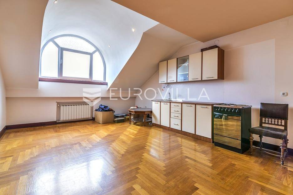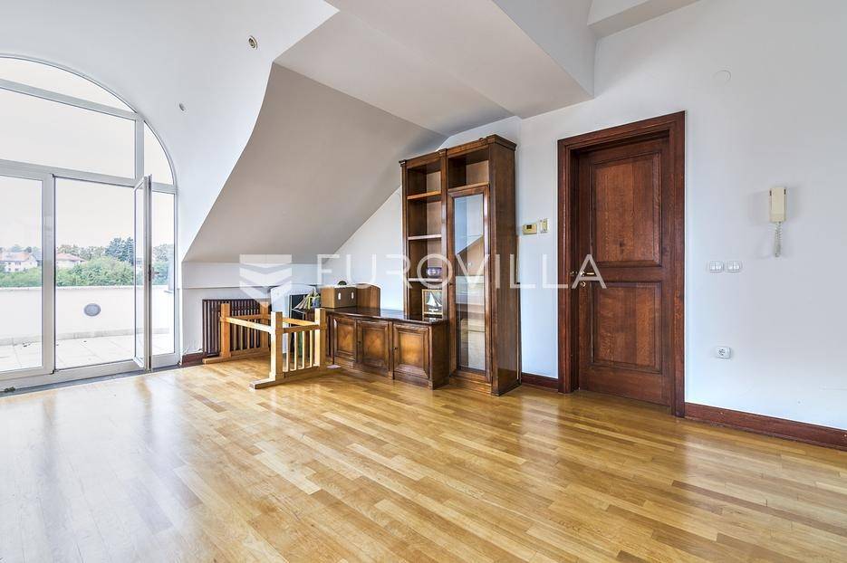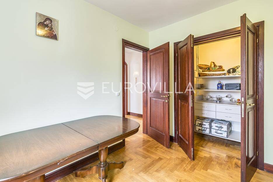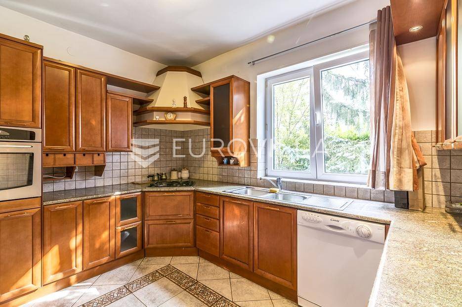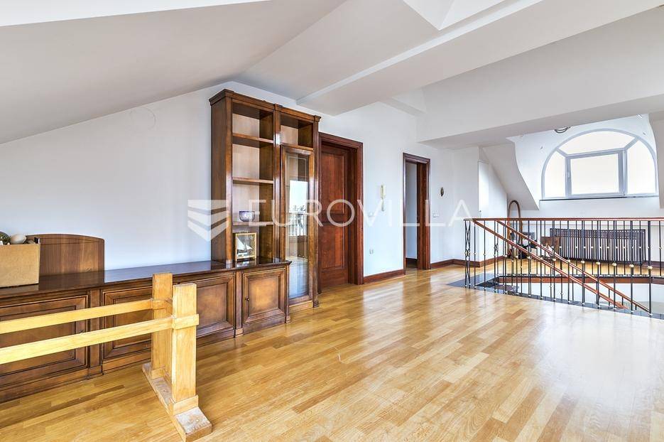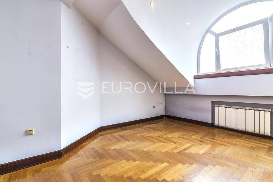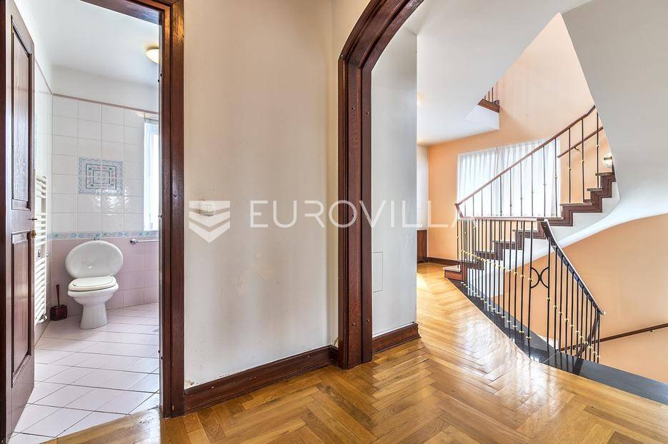 Zelengaj (Pantovčak), obiteljska kuća površine 500m2 razvedena u 4 etaže, na zemljištu 1.300m2 (fronta 17m).Razizemlje: pomoćni ulaz open, vešeraj, vinski podrum, 2 ostave, dnevni boravak/gym, spavaća soba s kupaonicom, garderobom i terasom.Prizemlje: ulazni hodnik, prostran boravak s kaminom, blagovaonica s terasom, kuhinja, toalet za goste, garderoba.Kat: master soba s kupaonicom i garderobom, 2 spavaće sobe, terasa, kupaonica i balkon.Potkrovlje: dnevni boravak, velika nenatkrivena terasa s pogledom na grad i zelenilo, 2 spavaće sobe i kupaonica.Garaža za 2 automobila.Kuća je dobro održavana. Sagrađena 1998 god, adaptirana 2009 god. Grijanje plin. Orijantirana pretežno jug zapad. Prekrasan pogled na zelenilo i grad. Ostale informacije na upit.... Više na eurovilla.hr, ID: 382054