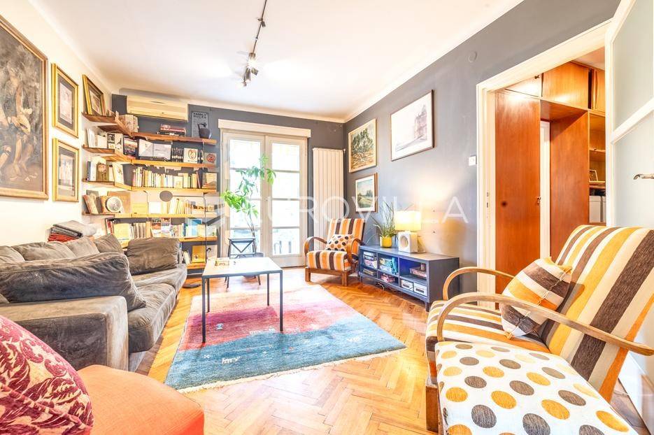 Trešnjevka, Nova cesta, stan lijepog, otvorenog tlocrta u odlično održavanoj zgradi na 2.katu bez lifta. Zatvorena površina 99,70 m2. Sastoji se od ulaznog prostora, 3 sobe, lijepog dnevnog boravka, kuhinje s blagovaonicom, kupaonice s wc i dodatni wc.Stan ima lijepu terasu koja u jednom djelu je loggia.Stanu pripada vanjsko parking mjesto i garaža od 26m2.Zgrada je armirano betonska, gradio ju je zagrebački arhitekta Viktor Thumm, koji je ovaj stan namijenio sebi tijekom života.Mikrolokacija nekretnine je odlična - osnovna škola, dječji vrtić i park na nekoliko koraka udaljenosti, tržnica na 3 minute hoda. Za sve dodatne informacije stojimo na raspolaganju.... Više na eurovilla.hr, ID: 383233