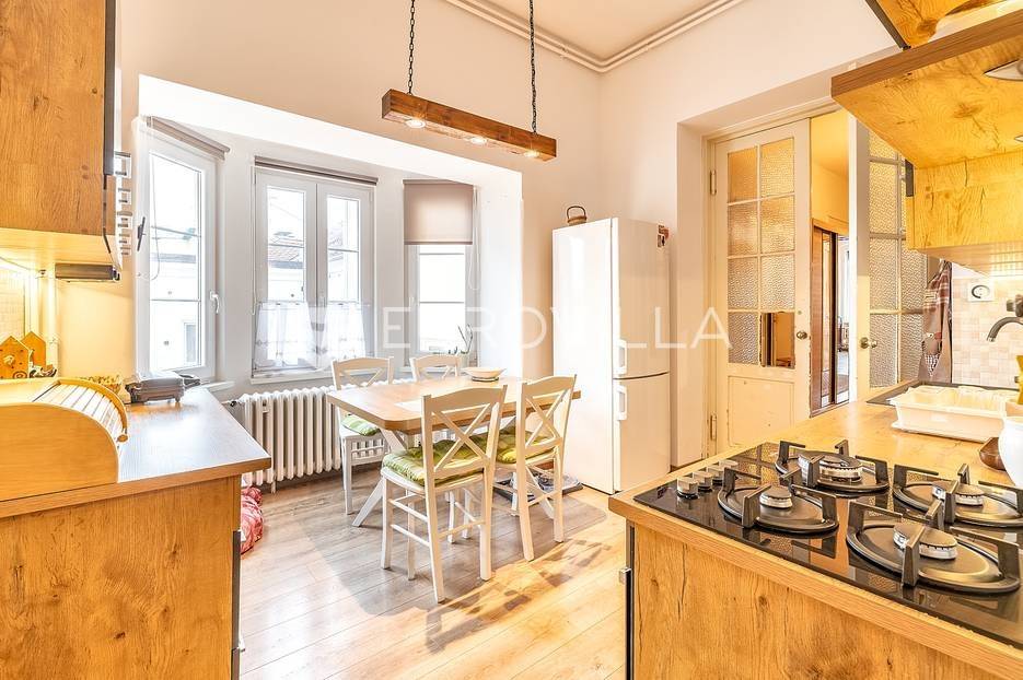 Zagreb, Centar, prekrasan četverosoban građanski stan površine 165 m2 na trećem katu kompletno obnovljene zgrade. Nalazi se na Marulićevom trgu, između Botaničkog vrta i Mažuranićevog trga, u zelenoj zoni Lenucijeve potkove.Sastoji se od ulaznog hodnika, dnevnog boravka, dvije prostrane spavaće sobe, treće spavaće sobe s walk in garderobom i natkrivenom terasom, kupaonice, zasebnog toaleta, kuhinje, ostave i izbe. Zatvorene površine 155 m2 s natkrivenom terasom 6 m2 (4,5 m2).Iz dnevnog boravka i master spavaće sobe pruža se pogled na impresivno zdanje Hrvatskog državnog arhiva, dok su druge dvije sobe i terasa orijentirani na istočnu dvorišnu stranu.Stan je kompletno adaptiran, osb podloge na podovima, ožbukani zidovi i ojačani mrežicama, pvc prozori, nove instalacije i kondenzacijski bojler. Zgrada je u potpunosti obnovljena nakon potresa; postavljen je novi krov, uklonjeni dimnjaci, stepenice ojačane čeličnim konstrukcijama, pvc prozori, ožbukani zidovi te nova fasada. Pripadaju mu dvije ostave u podrumu 9 m2 (4,5 m2) i 2 m2 (1 m2).Izuzetno lijep i ugodan stan na prestižnoj lokaciji centra grada.Za sve ostale upite Vam stojimo na raspolaganju.... Više na eurovilla.hr, ID: 390384