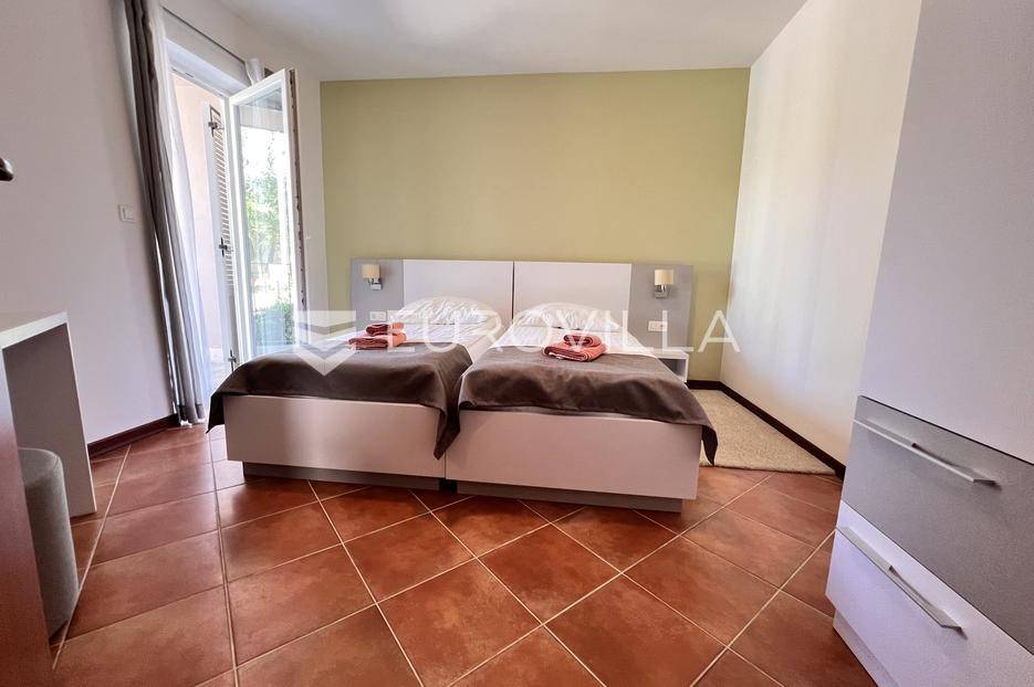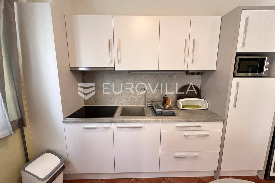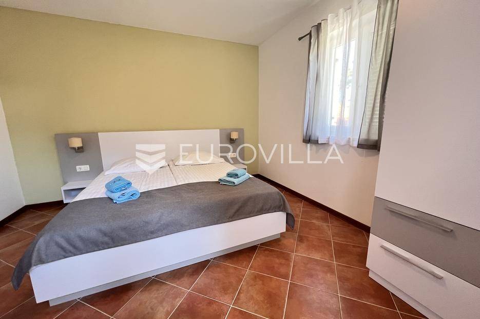 Na jednoj od najljepših lokacija u Medulinu, na svega 200 m od mora smjestio se ovaj funkcionalni i namješteni apartman u zgradi novije gradnje.Nalazi se u prizemlju, površine je 70.30 m2, te se sastoji od: ulaza, dnevnog boravka, blagovaone i kuhinje, dvije spavaće sobe, kupaonice, tri lođe te vanjskog stubišta, s pripadajućim parkirnim mjestom oznake P2 te pripadajućim vrtom oznake V2.Klimatizirano. Prodaje se u kompletno namještenom stanju kao na slikama.Čisto vlasništvo 1/1.Idealna nekretnina za odmor ili za bavljenjem turizmom.Za više informacija Vam stojimo na raspolaganju.... Više na eurovilla.hr, ID: 415133
