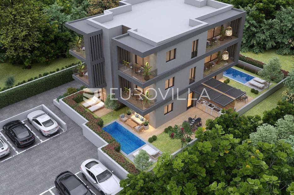 Luksuzna i kvalitetna novogradnja u Premanturi, smještena na svega 500 metara od Kamenjaka i kampa Stupice. Stambeni projekt sastoji se od šest stanova, raspoređenih na tri etaže, a ono što ih odlikuje je izuzetno kvalitetna gradnja te prvoklasni materijali koji će se koristiti pri opremanju.Navedeni stan koji prodajemo smjestio se na prvom katu, površine je 67.20 m2 te se sastoji od : ulaznog hodnika, kupaonice, ostave, open space dnevnog boravka s kuhinjom i blagovaonom, terase na koju se pristupa iz dnevnog dijela, dvije spavaće sobe, te etažiranog vanjskog parkirnog mjesta. Stambenog prostora je 64.70 m2.Podno električno grijanje kroz cijeli stan. Tri inverter klima uređaja u sobama. Električni podizači roletna s komarnicima. Prvoklasna keramika te parketi u spavaćim sobama.Predviđeni završetak gradnje je zima 2025. godine.Jedna od rijetkih prilika za kupovinu nekretnine u novogradnji na području Premanture, stoga ne propustite ovu priliku.Za više informacija stojimo Vam na raspolaganju.... Više na eurovilla.hr, ID: 416378