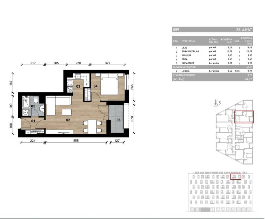 Zagreb, Vrapče, novogradnja na šest etaža s podzemnom garažom i vanjskim parkirnim mjestima.Stan S-59 dvosoban stan na šestom katu, zatvorene površine 41,40 m2.Sastoji se od: ulaznog hodnika, open space dnevnog boravka s blagovaonicom i kuhinjom, spavaće sobe, kupaonice i loggie površine 3,69 m2. Sveukupno 44,17 m2.Objekt je projektiran prema najsuvremenijim standardima gradnje; dok je čitava konstrukcija armirano - betonska. Ravni krov je neprohodni, izoliran hidroizolacijskim folijama nove generacije, te toplinskom izolacijom debljine 20 cm. Fasada je također izvedena u ETICS sustavu s toplinskom stiropor izolacijom debljine 15 cm, što u konačnici svrstava zgradu u A energetski razred.Pomno je biran svaki detalj, pa je tako vanjska stolarija u izvedbi aluminij - drvo s troslojnim staklom, sva rasvjeta u LED izvedbi, keramičke pločice su prve klase u sanitarnim čvorovima i terasama, a sva sanitarna oprema je visoke kvalitete poznatih svjetskih proizvođača.Dnevni boravci opremljeni su zidnim klima uređajima, dok je grijanje i topla voda preko kondenzacijskih bojlera.Zgrada je opremljena dizalom, zelene su površine hortikulturno uređene s odvojenim prostorom za smještaj kanti za otpad.Odlična lokacija, blizina javnog prijevoza, ljekarne, trgovina, restorana, veterinara, centra za ljepotu i ostalih sadržaja.Za sva dodatna pitanja stojimo na raspolaganju.... Više na eurovilla.hr, ID: 433693