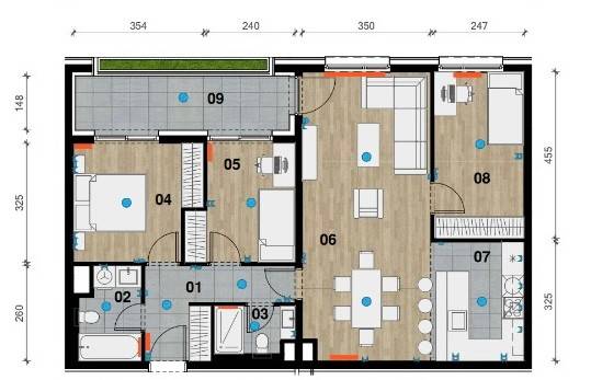 Zagreb, Črnomerec, četverosoban stan u sklopu novogradnje od 187 stanova na izvrsnoj lokaciji.Stan se nalazi na četvrtom katu i sastoji se od ulaznog hodnika, open space prostora dnevnog boravka i blagovaonice, tri spavaće sobe od kojih dvije imaju izlaz na loggiu, kupaonice te zasebnog wc-a. Ukupne zatvorene površine 80,17 m2. Orijentacija stana je sjever.Novogradnja je opremljena vrhunskim materijalima.Fasadni sustav zgrade ima mineralnu vunu debljine 20 cm, a prozori su troslojni u drvo-aluminij izvedbi s elektro aluminijskim žaluzinama, protupožarna i protuprovalna vrata, Galeković hrast parket te Laufen sanitarije. KONE lift. Vaillant kondenzacijski bojler za grijanje i Samsung klima uređaj u svakoj sobi kojima će se upravljati putem smart aplikacije na mobilnom uređaju.U samom središtu zgrade smješten je park za djecu. Također, u kompleksu zgrade biti će smješten dječji vrtić. Zgrada je odlično povezana s javnim prijevozom, a u neposrednoj blizini nalaze se svi bitni sadržaji.Obavezna kupnja garaže po cijeni od 3.742,50 €/m2 ili garažnog parkirnog mjesta po cijeni od 2.495,00 €/m2.Stan je useljiv u srpnju 2025. godine.Za sve dodatne informacije stojimo Vam na raspolaganju.... Više na eurovilla.hr, ID: 463786