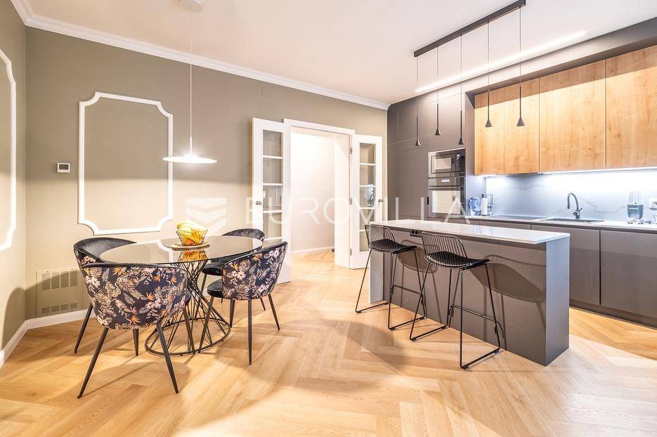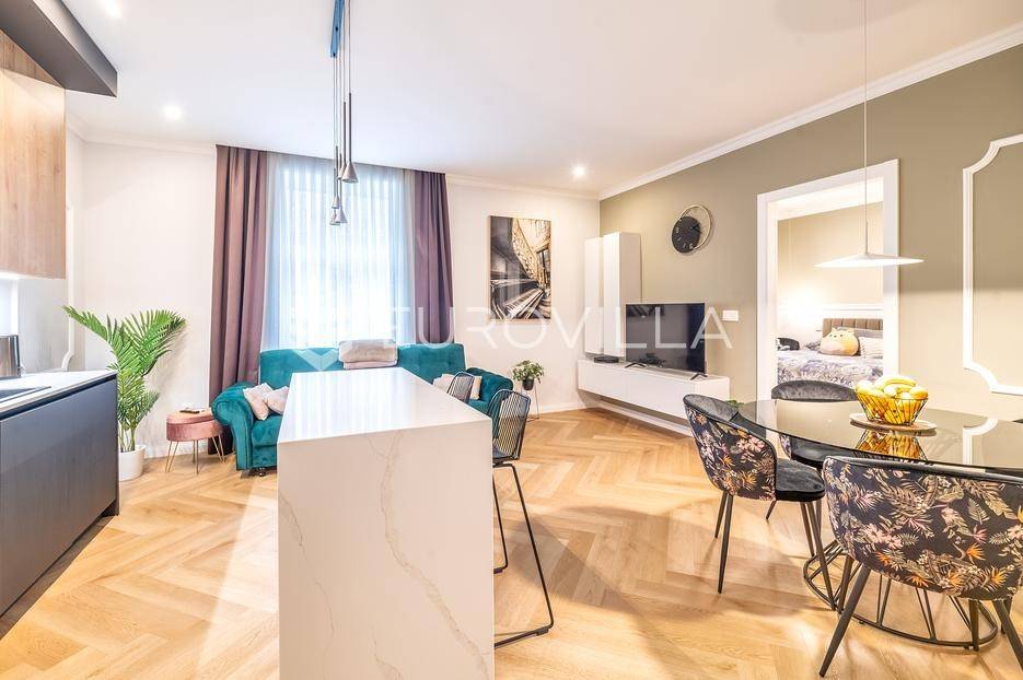 Trosoban stan smješten u prizemlju, u samom centru Zagreba, ukupne je površine 73,34 m². Nekretnina je u potpunosti adaptirana, s naglaskom na kvalitetu izvedbe i funkcionalnost prostora. Opremljena je podnim grijanjem. Orijentacija stana je zapad-sjever, čime se osigurava ugodno prirodno osvjetljenje i mirniji ugođaj.Interijer je suvremeno uređen i namješten uz korištenje kvalitetnih materijala. Ugrađena je PVC stolarija. Kuhinja s blagovaonicom i kuhinjskim otokom čini otvoreni i funkcionalni središnji dio stana, povezan s dnevnim boravkom.Stan se sastoji od dvije spavaće sobe, pri čemu glavna spavaća soba ima walk-in ormar. Kupaonica je moderno uređena, a terasa predstavlja dodatnu vrijednost stana. Raspored prostorija je racionalan i dobro organiziran, bez nepotrebnih prolaznih dijelova, što omogućuje optimalno korištenje ukupne kvadrature. Zahvaljujući uređenju, rasporedu i izvrsnoj lokaciji, stan je prikladan za stanovanje, ali i kao investicija.Odlična lokacija u blizini svih bitnih sadržaja.Za sva pitanja Vam stojimo na raspolaganju.... Više na eurovilla.hr, ID: 517448