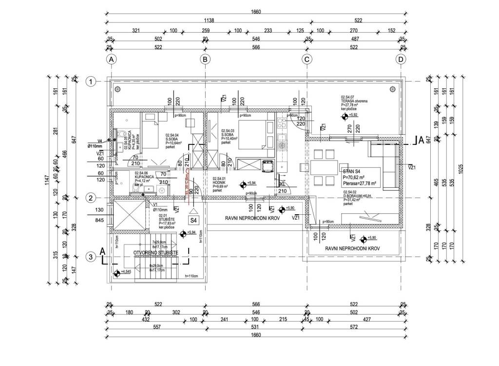 Zagreb, Maksimir, trosoban penthouse na drugom katu novogradnje s ukupno 4 stana i privatnim parkirnim mjestom, smješten u mirnom okruženju prirode.Stan S4 nalazi se na drugom katu zgrade A, te se sastoji od ulaznog hodnika, dnevnog boravka s kuhinjom i blagovaonicom te izlazom na terasu 27,78 m² (obračunski 6,95 m²), dvije spavaće sobe i dvije kupaonice. Ukupna zatvorena površina stana iznosi 70,62 m².Stanu pripada vanjsko parkirno mjesto površine 12,50 m² (obračunski 3,12 m²) te spremište 2,66 m² (obračunski 1,33 m²), oba uključena u cijenu stana. Obavezna je kupnja garažnog parkirnog mjesta po cijeni od 45.000 EUR.Ukupna površina stana iznosi 82,02 m².Novogradnja je vrhunski građena:armiranobetonska konstrukcijatermoizolacijska fasada (ETICS sustav)aluminijska stolarija s troslojnim izo-staklom i aluminijskim roletamadizalice topline zrak-voda (grijanje i priprema tople vode)podno grijanjeravni krov, moderni materijali i kvalitetna završna obradalifthortikulturno uređen okolišprojekt obuhvaća četiri zgrade s ukupno 16 stanova.Odlična mikrolokacija u zelenom dijelu Maksimira osigurava mir i privatnost, a ujedno nudi dobru povezanost s gradom. U blizini se nalaze svi osnovni sadržaji za ugodan život.Useljivo ljeto 2027. godine.Za sve dodatne informacije stojimo Vam na raspolaganju.... Više na eurovilla.hr, ID: 558520
