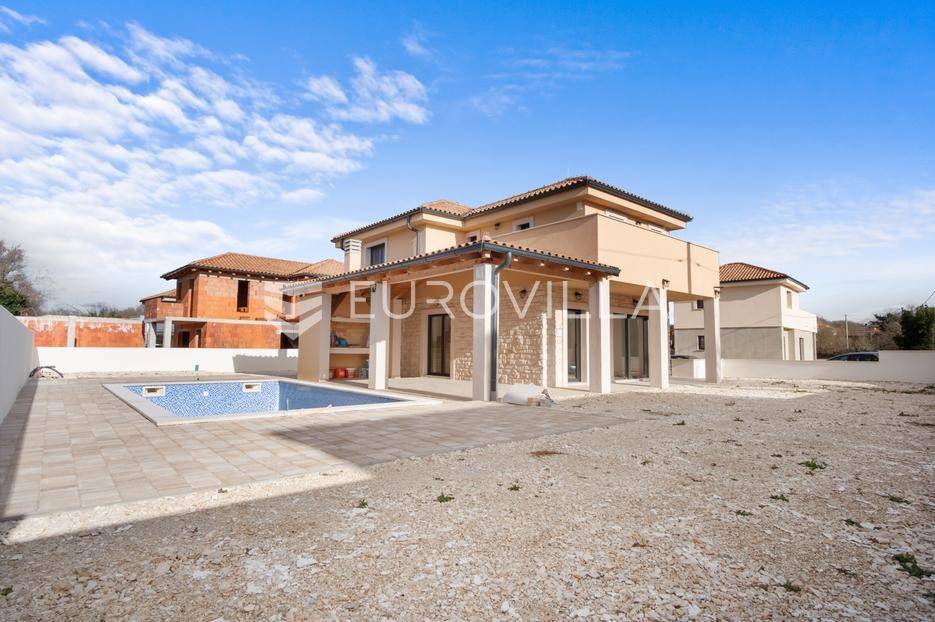 Prodaje se ova prekrasna vila modernog dizajna s bazenom u novom mirnom naselju Cukrići, Svetvinčenat. Objekt se nalazi u rezidencijalnoj četvrti i okružen je drugim vilama za odmor. Udaljen je samo 20 minuta vožnje od prvih plaža i centra povijesnog grada Pule.Vila ima stambenu površinu od 155 m2 te ograđenu okućnicu od 497 m2 na kojoj se nalazi bazen i dva parkirna mjesta. Prizemlje vile sastoji se od velikog dnevnog boravka s kuhinjom i blagovaonicom te kupaonice. Dnevni boravak ima izlaz na veliku natkrivenu terasu na kojoj se nalazi ljetna kuhinja i u produžetku bazen i sunčalište. Unutarnje stepenice vode na prvi kat koji se sastoji od 3 spavaće sobe i 3 kupaonice. Svaka soba ima svoju kupaonicu te izlaz na balkon s pogledom. Grijanje vile je etažno, podno.Vila dolazi sa svim potrebnim uređenjem (podovi, parketi, zidovi, podno grijanje, električna energija, sanitarije), a kupac sam namješta interijere, po sistemu ključ u ruke.Ova luksuzna vila s bazenom pravi je biser u ponudi nekretnina u Istri!Bogata povijest i kulturna baština doprinose razvoju ovog malog istarskog središta koje godišnje posjeti više od 60.000 posjetitelja sa 70.000 noćenja, pod imenom Svetvinčenat!Atrakcije ovog gradića razvijaju poseban oblik turizma i druge dodatne turističke ponude poput bogate eno-gastronomske ponude s brendom tartufa, zatim aktivnog odmora u prirodi, raznovrsnih sportskih sadržaja, pješačkih staza, tematskih ruta, moderno opremljenih kongresnih centara i centara za posjetitelje. Brojne manifestacije i festivali zajedno čine nezaboravan doživljaj u Svetvinčentu i okolici. Cijela ISTRA je destinacija koja živi 365 dana u godini koja bilježi redoviti rast posjećenosti!Za dodatne informacije ili razgledavanje, slobodno nas kontaktirajte.... Više na eurovilla.hr, ID: 576130