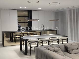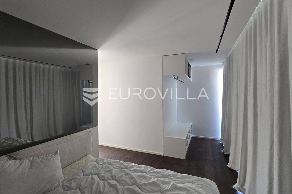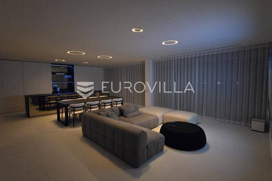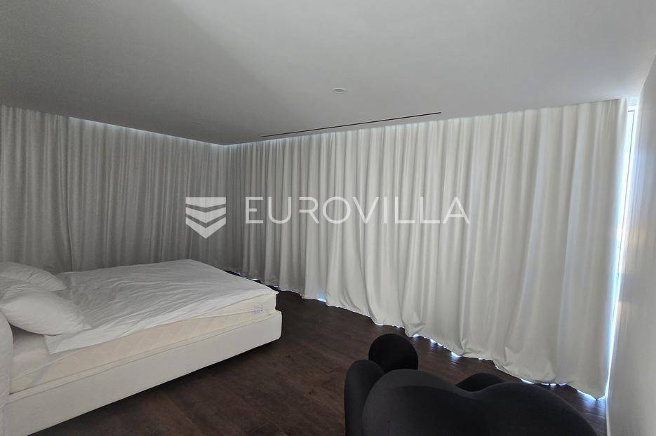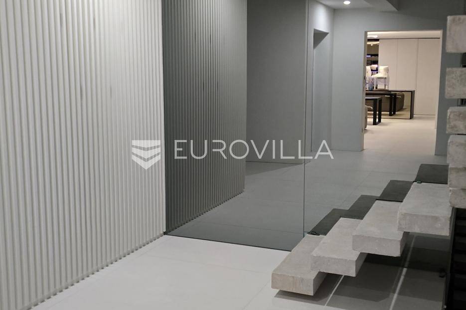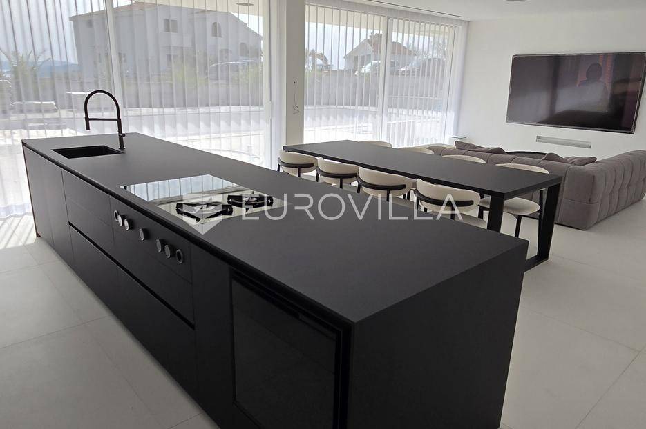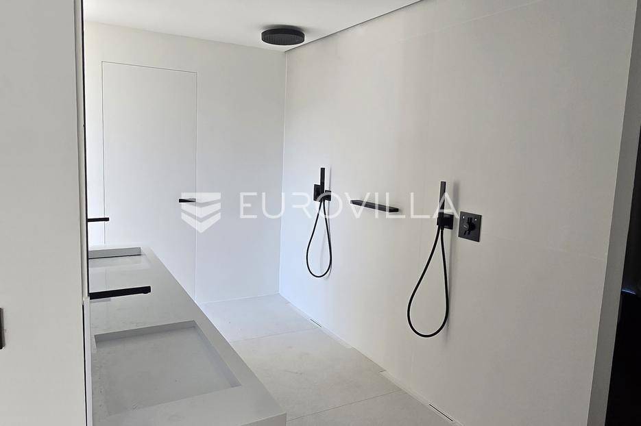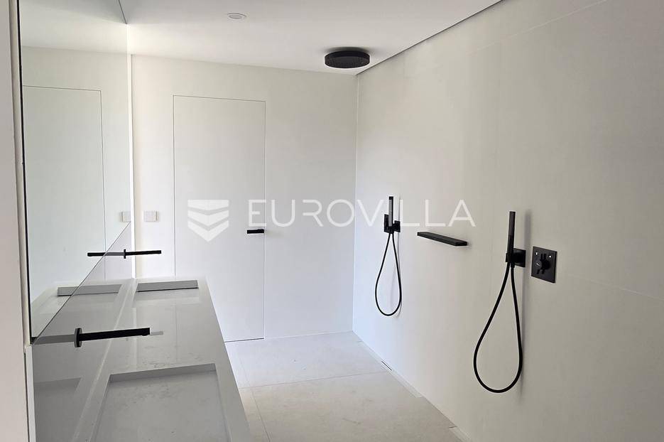 Jedinstvena vila površine 550 m2 na zemljištu površine 864 m2. Sastoji se od podruma, prizemlja, prostrane okućnice i prvog kata.U podrumu ukupne kvadrature 91 m2 se nalazi fitness, jacuzzi, wellness, tuš, strojarnica i kompenzacijski bazen.PODRUM oprema: Fitnes Technogym (ogledalo na sva tri zida): Eliptik, bicikla, staza za trčanje, home Bench, utezi Hexagon 12,5kg-20kg, tvSpa: Jacuzzi Treesse Ghost Zen Pro za 8 osoba, finska sauna, turska sauna, tuš (Hansgrohe Rainfinity 360), ležaljka Grattoni Joy, Bose ugradno ozvučenje, Irisceramica Luce, rekuperator MitsubishiNa prizemlju ukupne površine 151,70 m2 se nakazi ulazni dio, wc, dnevni boravak, kuhinja, blagovaonica, vešeraj, garaža za automobil te natkriveni ulaz.PRIZEMLJEoprema: keramika Refin Playmatbela, Mizarstvo Zupanc kuhinja po mjeri, Fenix anti fingerprint, Bora Professional 3.0, plin + indukcija, Bora X Bo parna pećnica, Bora posuđe za kuhanje, Liebherr hladnjak i škrinja-otvaranje na električni motor, 8x blagovaonski stol Caligaris itd.Na prostranoj okućnici s čak 219,50 m2 zelene površine se nalazi ljetna kuhinja, natkrivena terasa, bazen površine 75 m2 te sunčalište.OKUĆNICA oprema: fasada STO Milano 20 cm izolacije, 2x ugradbeni trampolin BERG Ø270cm, 8 kanarskih palmi, razno mediteransko bilje, navodnjavanje, ljetna kuhinja izrađena po mjeri s električnom pločom Kenyon i koritom, ljetni blagovaonski stol i stolice Gandiablasco, video nadzor Dahua, alarmni sistem Ajax (senzor pokreta, dim, plin, CO2), interfon Dahua (ulaz na biometriju - lice, prstni otisak; QR kod, čip, narukvica)...Na prvom katu ukupne površine 187,60 m2 se nalaze četiri prostrane spavaće sobe. Svaka soba posjeduje vlastitu kupaonicu te master soba osim kupaonice posjeduje i vlastitu garderobu.PRVI KAT oprema: parket Weitzer Hrast četkani, uljen, krovni prozor 360x120, otvaranje na motor, kreveti Ditre Flann 2.0, 1x tuš Hansgrohe Rainfinity 360, pult po mjeri iz Coriana u bijeloj mat boji s dva umivaonika, 2x Vitra slavina iz zida na senzor, WC zasebno s ventilacijom, blackout zavjese po mjeri na motor (daljinski, prekidač, touch), u kupatilu Refin Keramika Feel White Strutturato, podno grijanje i rekuperator Mitsubishi, ormar po mjeri.OPREMA općenito: TKE lift s crnim staklom i ogledalom, u svim prostorijama je Mitsubishi klima split sistem s diskretnim kanalskim difuzorom, Vessmann spremnikvode, Aquahome 30 Smart omekšivač vode, sve sobe imaju izlaz na balkon-na balkonu optiwhite staklo (ograda) s integriranim led svjetlom u donjem kanalu, ogledalo koje ide iz podruma pa sve do vrha, Alumil S650 klizne stjenke s duplim zastaklenjem, gradska voda, bio jama s pročiščevačem, predpriprema za gradsku kanalizaciju, gradnja vile armirani vodootpornim betonom, podrum je hidroizoliran s Voltexom.Na lijepoj, mirnoj i atraktivnoj lokaciji u gradu Vodice, na samo 15.-ak minuta automobilom od grada Šibenika.Više informacija na upit.... Više na eurovilla.hr, ID: 576589