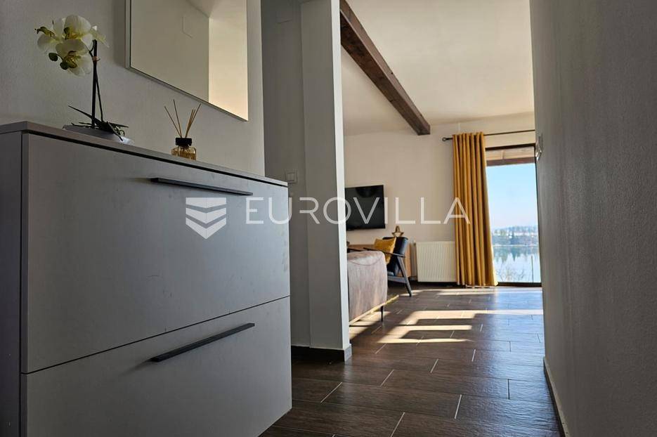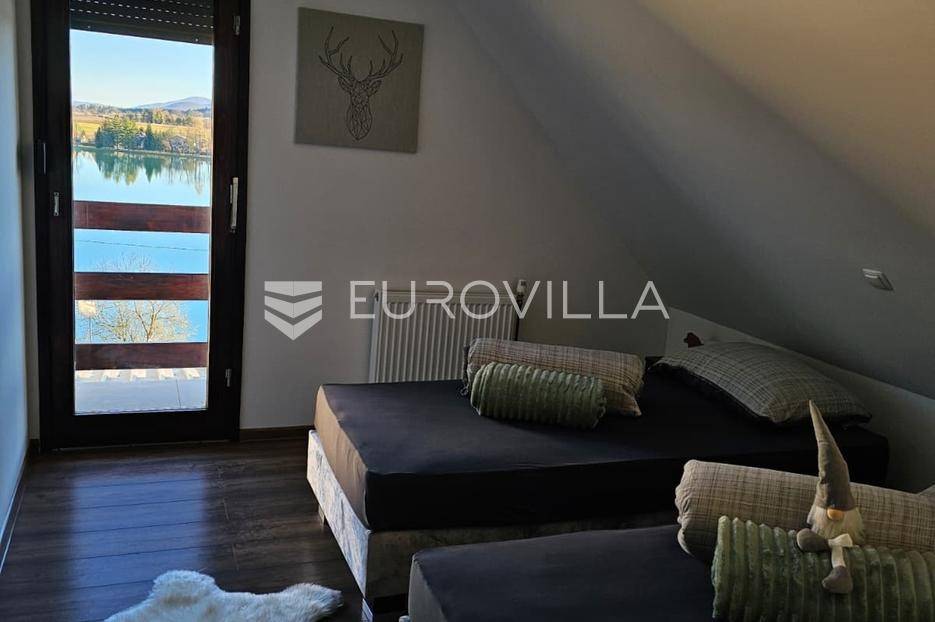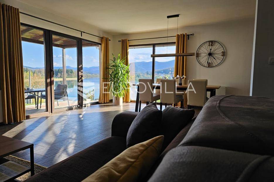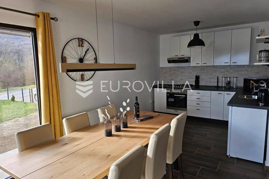 Ogulin, Sabljak Selo, prekrasna dvoetažna novouređena kuća 135 m2 na jezeru Sabljaci.Jedinstvena lokacija. Na ograđenoj parceli od 800 m2. Dvorište omeđeno kamenim zidom.Centralno grijanje na palete, PVC stolarija, podne obloge laminat i keramika, Krovni pokrov lim, nova fasada.Prizemlje: dnevni boravak, kuhinja s blagovaonom, kupaonica, WC, hodnik, spavaća soba, kotlovnica, garaža i zatvorena terasa s jacuzzijem.Kat: 2 spavaće sobe s izlazima na terasu.Sabljak Selo je malo selo u Karlovačkoj županiji, u sklopu Grada Ogulina. Selo je smješteno u goranskom / brdovitom području, s obiljem zelenih prostora. Jezero Sabljaci, koje daje vrlo slikovit vodeni element krajoliku. Selo ima vrlo miran, ruralni karakter: idealno je za one koji žele pobjeći od gradske gužve, ali i biti blizu prirode i vodenih površina.Udaljenosti:Zagreb 100 kmKarlovac 50 kmZa sva ostala pitanja stojim na raspolaganju.... Više na eurovilla.hr, ID: 578028