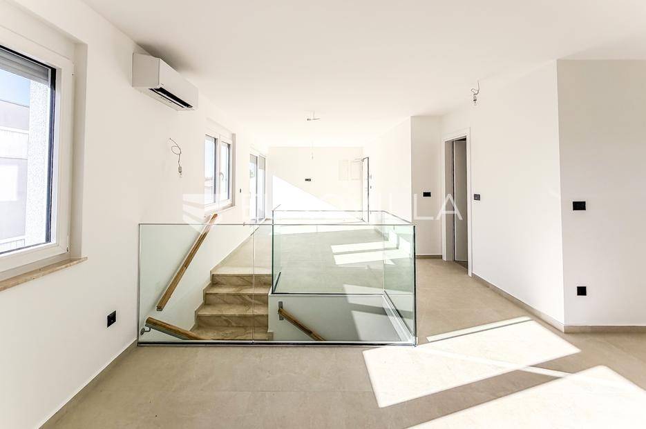 Stan S2 je funkcionalna dvoetažna stambena jedinica smještena u prizemlju i na prvom katu moderne stambene zgrade, osmišljena kao ugodan i praktičan obiteljski stan s pripadajućim vanjskim prostorima. Etaže su povezane unutarnjim stubištem, čime je osigurana dobra prostorna povezanost i komfor svakodnevnog korištenja.Ukupna korisna vrijednost površine iznosi 100,21 m², dok ukupna podna površina sa sporednim dijelovima i pripadcima iznosi 176,57 m².PovršineStambeni prostor (posebni dio): 79,83 m²Ukupna korisna vrijednost posebnog dijela: 79,45 m²Ukupna podna površina (s pripadcima): 176,57 m²Raspored prostoraPrizemlje: ulazni prostor, dnevni boravak s kuhinjom i blagovaonicomPrvi kat: hodnik, dvije spavaće sobe i dvije kupaoniceEtaže su međusobno povezane unutarnjim stubištem.Vanjski prostori i pripadciVrt: 39,82 m²Nenatkrivena terasa na krovnoj terasi: 13,78 m²Natkriveni izlaz na krovnoj terasi: 0,77 m²Spremište u podrumu (S2): 14,87 m²ParkiranjeDva vanjska parkirna mjesta (PM1 i PM2), svako površine 13,75 m²Stan S2 ima vlastiti vrt koji omogućuje boravak na otvorenom, privatnost i dodatnu vrijednost za obiteljski život ili boravak tijekom odmora. Orijentacija stana i raspored prostorija osiguravaju dobru prirodnu osvijetljenost i funkcionalnu podjelu dnevne i noćne zone.Stan se nalazi u mirnom okruženju zgrade s ukupno četiri stambene jedinice, s uređenim zajedničkim prostorima i pripremom za ugradnju lifta.Nekretnina je dio suvremene, energetski učinkovite novogradnje, pogodna za cjelogodišnje stanovanje ili boravak tijekom odmora.Tehnička oprema i izvedbaZgrada je građena kombinacijom armirano-betonske konstrukcije u podrumu i zidanog nadzemnog dijela, uz kvalitetno izvedene pregradne zidove s dodatnom zvučnom i toplinskom izolacijom.Podne obloge u dnevnim prostorima izvedene su u keramici većeg formata, dok su spavaće sobe opremljene kvalitetnim vinilnim podovima. Grijanje je riješeno putem električnog podnog sustava, uz dodatno električno grijanje u kupaonicama, dok je klimatizacija osigurana u svim glavnim prostorima, uključujući dnevni boravak, kuhinju i spavaće sobe.Ugrađena je PVC stolarija s dvostrukim ostakljenjem, a otvori su opremljeni električnim roletama. Unutarnje stubište izvedeno je s metalnom ogradom, dok su stubišne obloge i klupčice izrađene u kamenu.Prizemne stambene jedinice povezane su s vrtovima, dok su krovne terase projektirane s pergolama. Zgrada je energetski optimizirana te uključuje solarni sustav, pri čemu svaki stan ima vlastitu jedinicu i bateriju snage 8 kW.Fasada je toplinski izolirana (8 cm izolacije), interijeri su obrađeni suhom gradnjom, a svakom stanu pripada ostava u podrumu, kao i prostor predviđen za smještaj opreme solarne elektrane. Podrumska etaža je djelomično iznad razine terena te ima prirodno osvjetljenje.Za više informacija i obilazak lokacije stojimo na raspolaganju.... Više na eurovilla.hr, ID: 581114