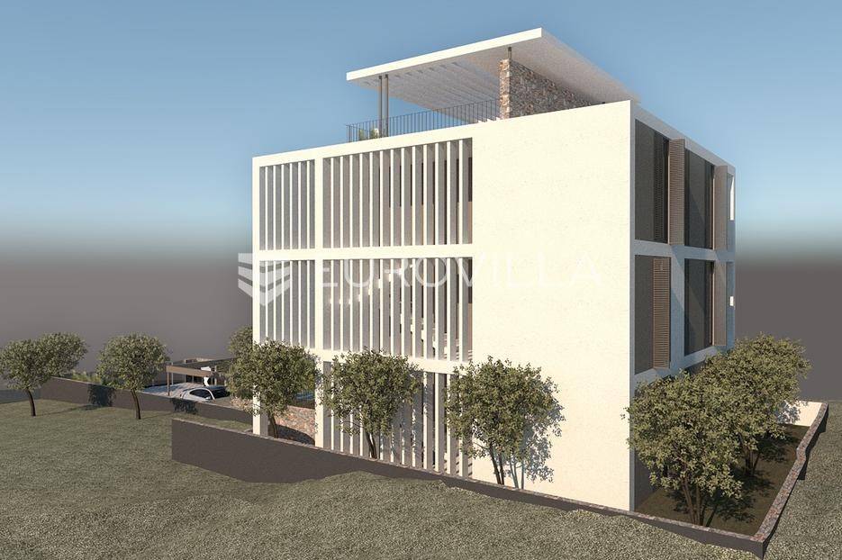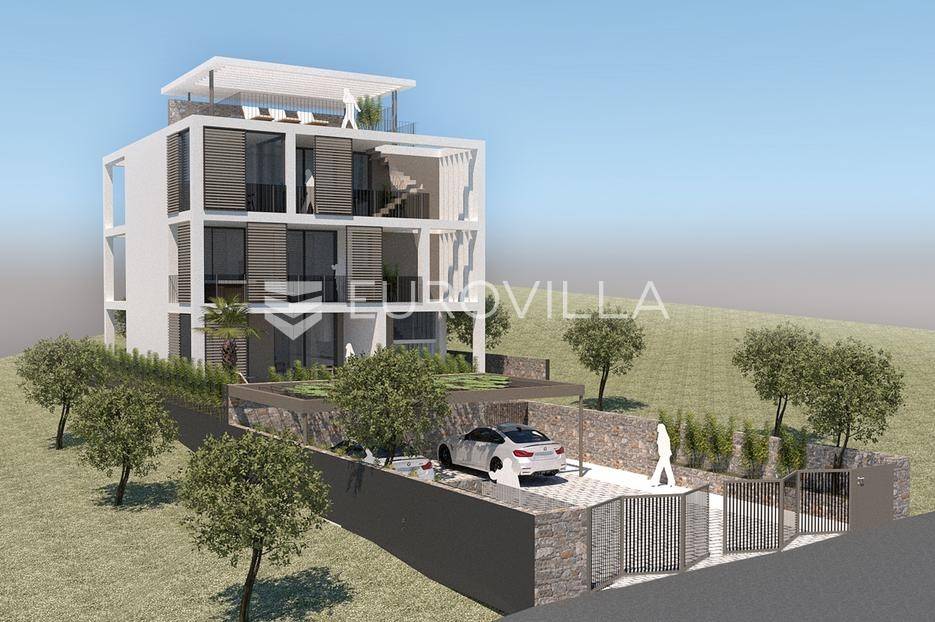 Primošten, NOVOGRADNJA, prekrasan stan na prvom katu s pogledom na more, ukupne neto korisne površine 93,75 m2. Zatvorena površina stana iznosi 80,03 m2. Stanu pripada i jedno natkriveno parkirno mjesto.Sastoji se od dnevnog boravka s kuhinjom i blagovaonicom, dvije spavaće sobe od kojih jedna ima privatnu kupaonicu, dodatne kupaonice i vešeraja. Iz dnevnog boravka izlazi se na natkrivenu terasu od 27,43 m2 s prekrasnim pogledom na more.Stan je odlično opremljen, a izdvojili bismo jacuzzi na terasi, podno grijanje u cijelom stanu, aluminijska stolarija s troslojnim staklom, kvalitetna toplinska izolacija, klima uređaji u svakoj sobi, protuprovalna vrata, te grijanje vode na toplinsku pumpu.Ovaj stan predstavlja odličnu priliku za one koji žele komfornu, modernu i dugoročno sigurnu investiciju, bilo za život, odmor ili turistički najam. Gradnja će biti završena do lipnja 2026. godine.Za sve dodatne informacije i dogovor razgledavanja, stojimo na raspolaganju.... Više na eurovilla.hr, ID: 585358