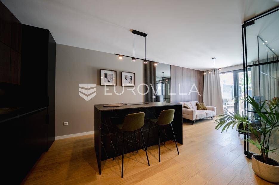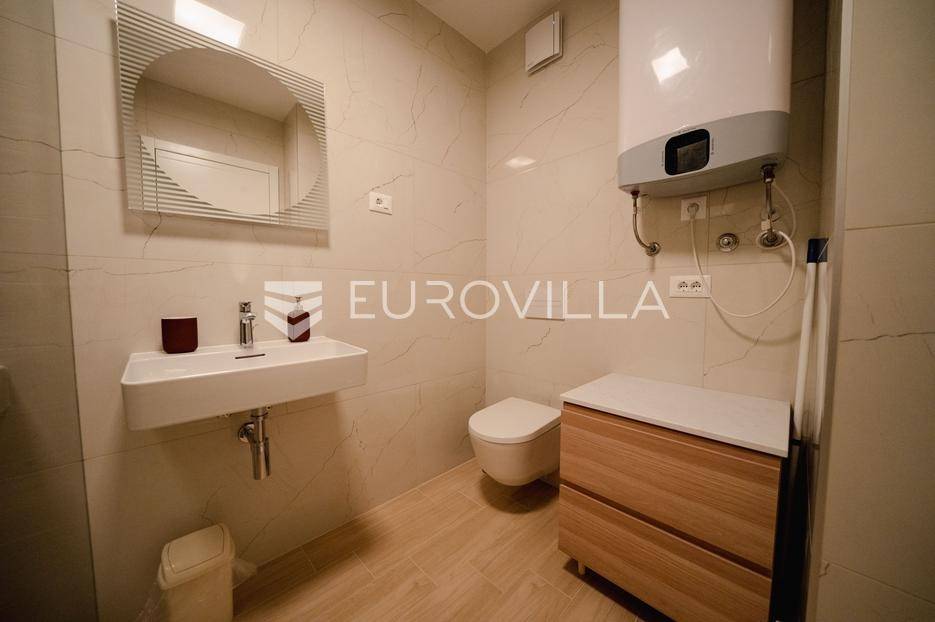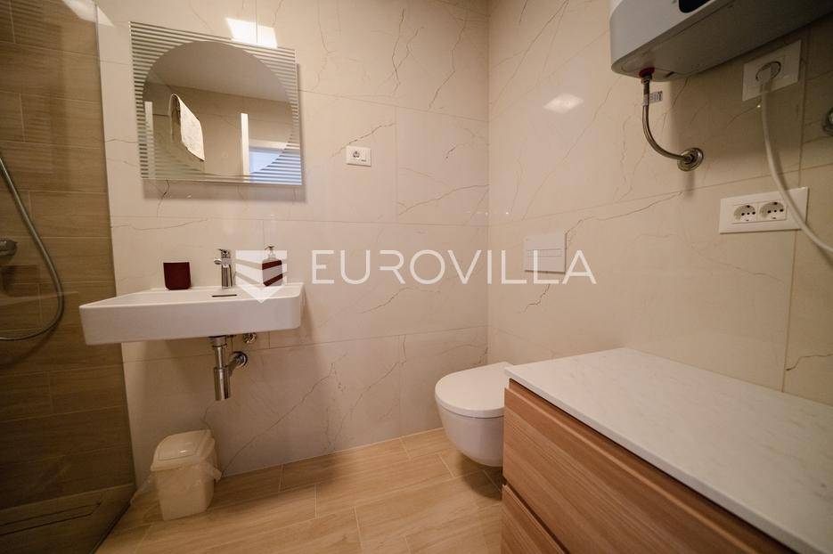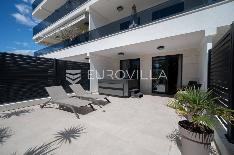 Zadar, Borik, moderan jednosoban stan u prizemlju stambene zgrade, površine 57,46 m2.Stan se sastoji od kuhinje, blagovaonice i dnevnog boravka, spavaće sobe s garderobom, kupaonice, natkrivene terase te prekrasno uređenog vrta u kojem se nalazi jacuzzi ( brutto površine 30 m2).Ukupna zatvorena površina stana iznosi 40,88 m2.Stan je potpuno i moderno namješten i opremljen i kao takav se prodaje.Sustav grijanja i hlađenja uređen je putem klima uređaja dok je u kupaonici postavljeno podno grijanje.Postoji mogućnost kupnje garažnog parkirnog mjesta.Stan se nalazi na atraktivnoj lokaciji, u jednom od najljepših dijelova grada Zadra.Marina Borik i gradske plaže nalaze se na 5 minuta hoda, ugostiteljski objekti, trgovine i školski sadržaji u blizini, izravna prometna povezanost s centrom grada i izlazom iz Zadra.Nekretnina je idealna za stanovanje, ali i kao investicija za sve koji se žele baviti turizmom obzirom da je objekt kategoriziran sa 4*.Uredno vlasništvo.Više informacija na upit.... Više na eurovilla.hr, ID: 662454