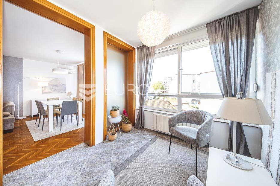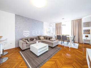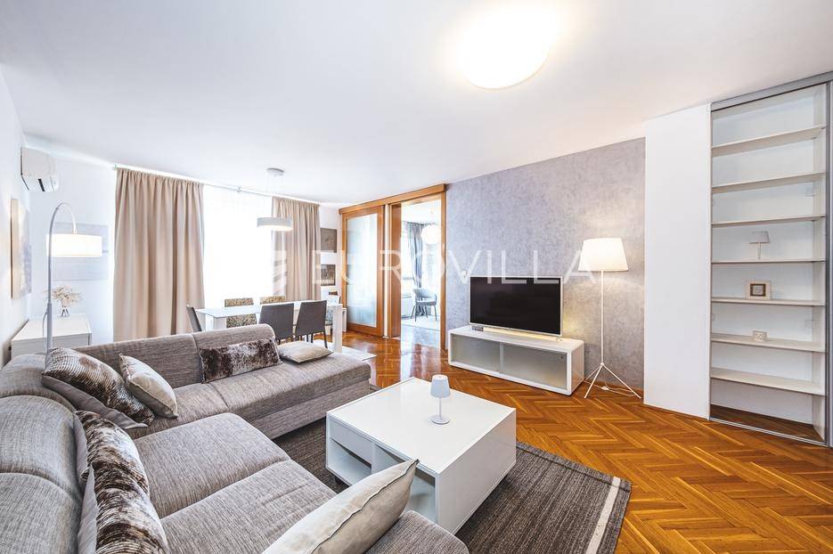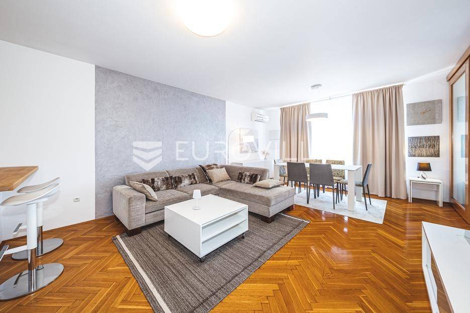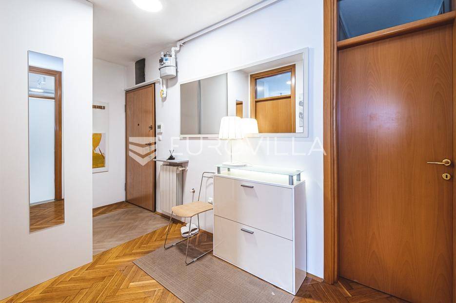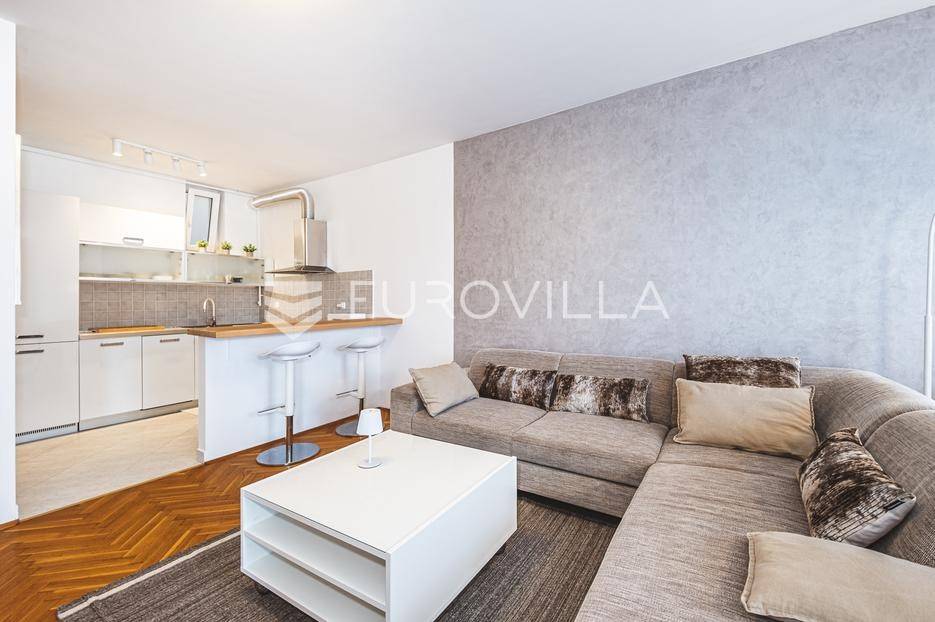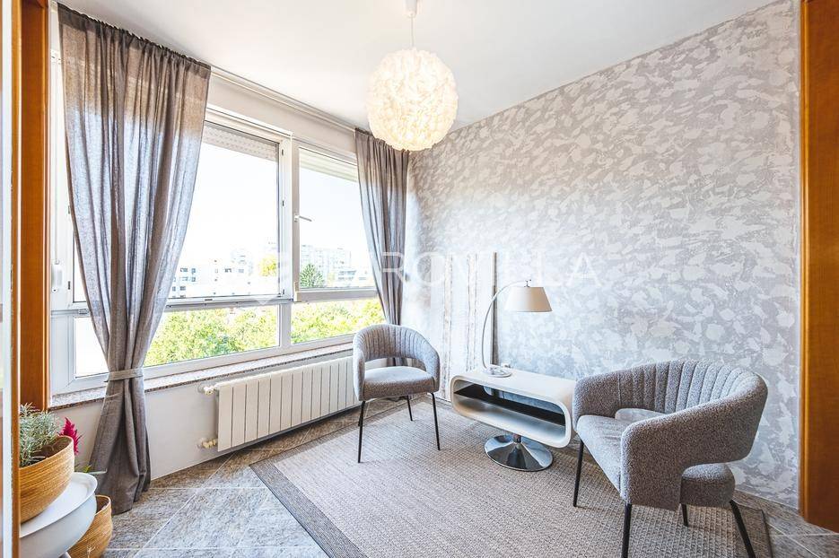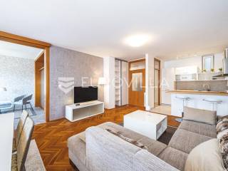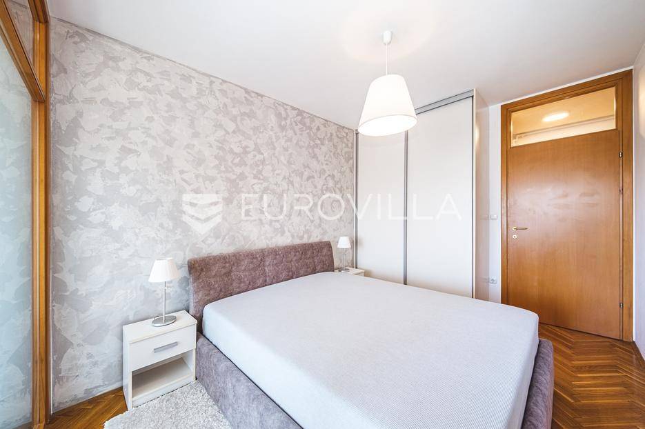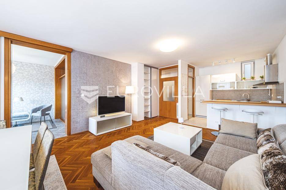 Zagreb, Knežija – dvosoban stan 65 m²Osnovne informacijeU najam se daje prekrasan, komforan i funkcionalan dvosobni stan površine 65 m² smješten na trećem katu četverokatnice s liftom. Uz stan dolazi garažno mjesto površine 16 m² u suterenu zgrade te dodatni prostor za odlaganje.garaža se plača dodatno 100€ mjRaspored• Prostrani hodnik s ugradbenim ormarima• Dnevni boravak, blagovaonica i kuhinja open space koncepta• Spavaća soba s ugradbenim ormarima• Kupaonica s toaletom• Grijana loggia koja se može koristiti kao radna soba ili prostor za odmorOpisStan je moderno namješten, potpuno opremljen i izrazito svijetao zahvaljujući jugozapadnoj orijentaciji. Funkcionalan raspored i brojni ugradbeni ormari u hodniku, spavaćoj sobi i dnevnom boravku pružaju obilje prostora za odlaganje. Ugodan dnevni prostor otvorenog koncepta čini stan idealnim za svakodnevni život i boravak.Stan je klimatiziran te ima etažno plinsko grijanje. Ugrađeni su hrastov parket, PVC stolarija s aluminijskim roletama, protuprovalna vrata i video nadzor ulaza.OpremaStan je potpuno opremljen: ugradbeni hladnjak, staklokeramička ploča za kuhanje, pećnica, mikrovalna pećnica, napa, perilica posuđa, perilica i sušilica rublja, kuhalo, kompletan pribor za jelo i kuhanje, smart TV uz mogućnost brzog interneta te osnovna oprema za čišćenje.LokacijaSmješten u mirnoj ulici na Knežiji s izvrsnom prometnom povezanošću. U neposrednoj blizini nalaze se tramvajska stanica, trgovine, škole, vrtići i svi sadržaji potrebni za kvalitetan i ugodan život.Ostale informacije na upit.... Više na eurovilla.hr, ID: 676852