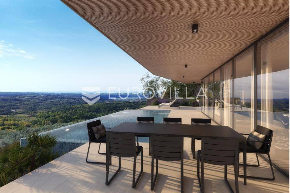Vila jedinstvenog dizajna nalazi se na lokaciji odakle seže pogled prema cijeloj Istri, vinogradima, maslinicima, na osami a blizu svih značajnih turističkih lokacija, pored same lokacije smjestili su se neki od naj prestižnijih hotela.Koncept elegantnog, prostranog prostora vile čine podrum s parkirnim mjestom za dva vozila, prizemljem koje je namjenjeno za veliki dnevni boravak, blagovaonu, kuhinju i naravno veliku terasu i prelivni bazen s koje se pruža spektakularan pogled. Na prvom katu smještene su prostrane sobe svaka sa svojom garederobom od kojih je jedna master soba.Mogučnost dogovora uređenja vile prema renderima uz nadoplatu.Za sva ostala pitanja budite slobodni kontaktirati.... Više na eurovilla.hr, ID: 774195
