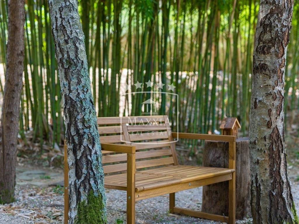 Der Hof besteht aus einem liebevoll gepflegten Park, der von Zypressen, Tannen, Eiben, Thuja, grünem und schwarzem Bambus, Prunus, Jasmin, Weide, Birke, Walnuss, Feigen, Ahorn, Weißdorn, Liguster, Berberitze, Albicia, Pampas, Palmen, Oliven und viele andere Pflanzen und Blumen.