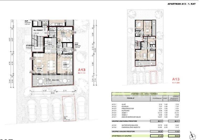 ukupna obračunska površina: 69,63 m