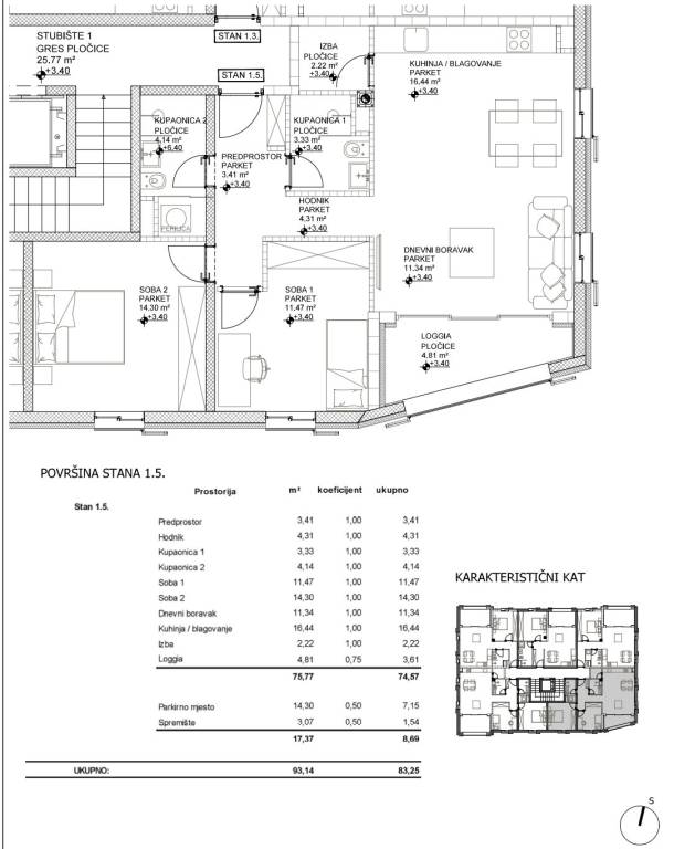 Grad Cres, Centar, trosoban stan na odličnoj lokaciji, NOVOGRADNJA.U samom centru grada Cresa, na svega 100 metara od mora i u neposrednoj blizini povijesne gradske jezgre, smješten je ovaj prostran i moderno organiziran trosoban stan, unutar suvremene poslovno-stambene zgrade visoke kvalitete gradnje.Stan se nalazi na prvom katu zgrade te ima ukupnu obračunsku površinu 83,25 m², dok stvarna površina stana s pripadajućim dijelovima iznosi 93,14 m². Sastoji se od ulaznog prostora i hodnika, dvije kupaonice, dvije spavaće sobe, prostranog dnevnog boravka povezanog s kuhinjom i blagovaonicom, dodatne ostave te loggie, koja osigurava ugodan vanjski prostor i dodatni komfor stanovanja.Stanu pripada i spremište u suterenu te parkirno mjesto u podzemnoj garaži, što predstavlja značajnu prednost u centru grada.Stan je projektiran s naglaskom na funkcionalnost i udobnost, a opremljen je kvalitetnim materijalima i modernim sanitarijama, podnim grijanjem, PVC stolarijom te griljama za zaštitu od sunca.Zgrada se prostire kroz pet etaža i obuhvaća podzemnu garažu u suterenu, tri poslovna prostora u prizemlju te ukupno 14 stanova raspoređenih na tri gornje etaže. Nalazi se na iznimnoj lokaciji u samom srcu Cresa, okružena trgovinama, restoranima, kafićima, kulturnim i zabavnim sadržajima, uz odličnu dostupnost javnog prijevoza.Ova nekretnina predstavlja izvrsnu priliku za stanovanje, ali i kao investicija za turistički ili dugoročni najam, zahvaljujući svojoj lokaciji, kvaliteti gradnje i funkcionalnom rasporedu.Za dodatne informacije slobodno nas kontaktirajte!... Više na eurovilla.hr, ID: 797443