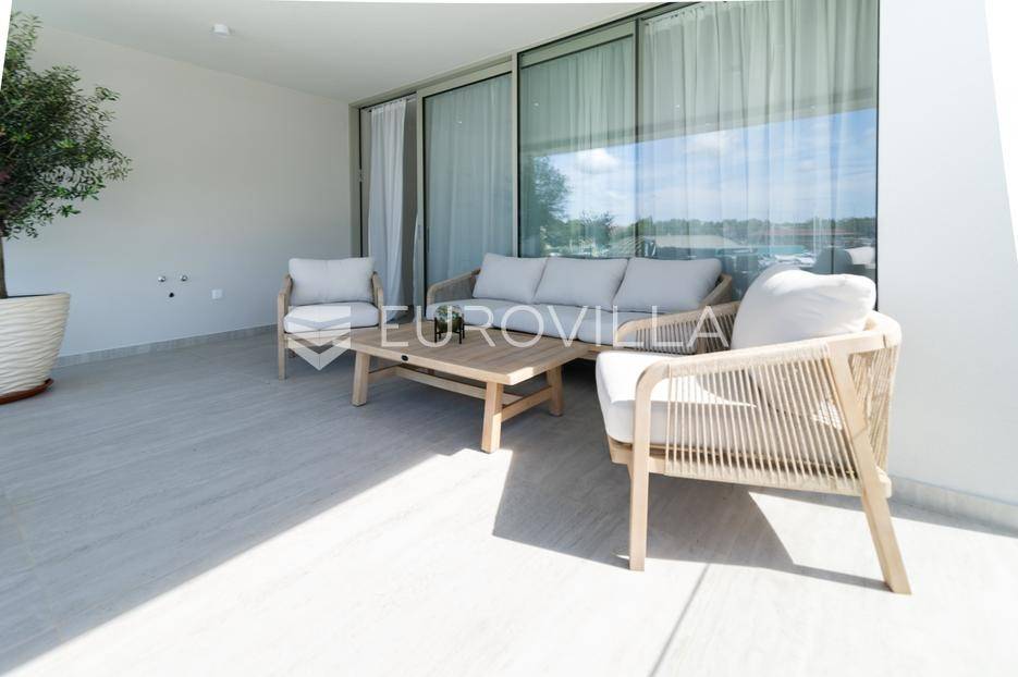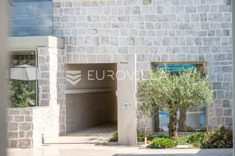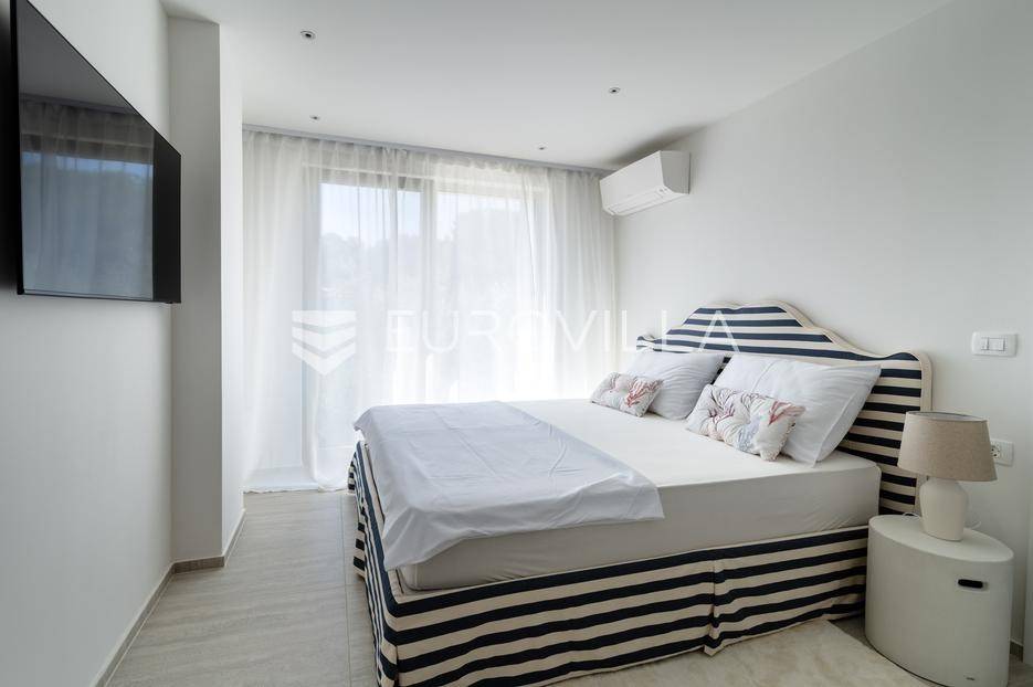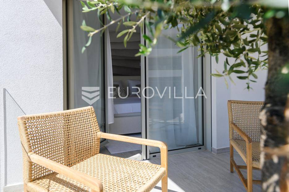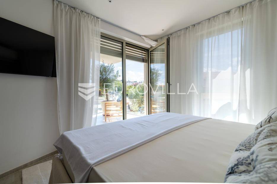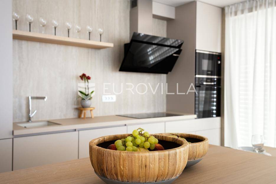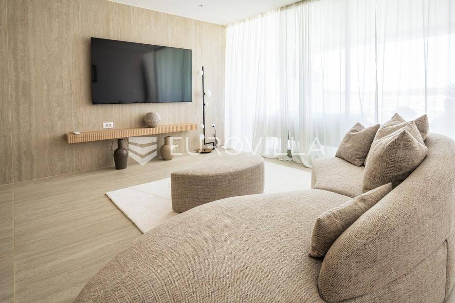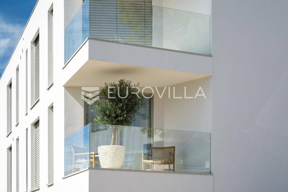 U ponudi je luksuzni stan površine 125,75 m² smješten na prvom katu moderne zgrade novije gradnje s ukupno osam stambenih jedinica i liftom.Stan je potpuno uređen, moderno namješten i opremljen visokokvalitetnim Bosch uređajima te se prodaje kompletno namješten. Posebna pažnja posvećena je funkcionalnosti, kvaliteti materijala i udobnosti stanovanja.Sastoji se od:ulaznog hodnikaostave s perilicom rubljagostinjskog WC-amaster spavaće sobe s vlastitom kupaonicom i izlazom na natkriveni balkondvije dodatne spavaće sobe sa zajedničkom kupaonicomprostranog open space prostora koji obuhvaća kuhinju s otokom, blagovaonicu i dnevni boravak s izlazom na natkrivenu terasu s pogledom na moreStan je opremljen podnim grijanjem putem dizalice topline te s četiri klima uređaja, što osigurava maksimalnu udobnost tijekom cijele godine.Uz stan dolaze:dva parkirna mjestadodatna ostavazajedničko korištenje grijanog bazena sa slanom vodomsaunateretanaLokacija je iznimna - svega 50 metara od prekrasnih plaža. U neposrednoj blizini nalaze se kvalitetni restorani, kafići, šetnice, biciklističke staze, trgovina, škola, dječje igralište i svi ostali potrebni sadržaji za ugodan život ili luksuzan odmor.Nekretnina predstavlja idealan izbor za obiteljski život, ali i izvrsnu investiciju na atraktivnoj lokaciji uz more.Za više informacija i dogovor razgledavanja stojimo Vam na raspolaganju.... Više na eurovilla.hr, ID: 823425