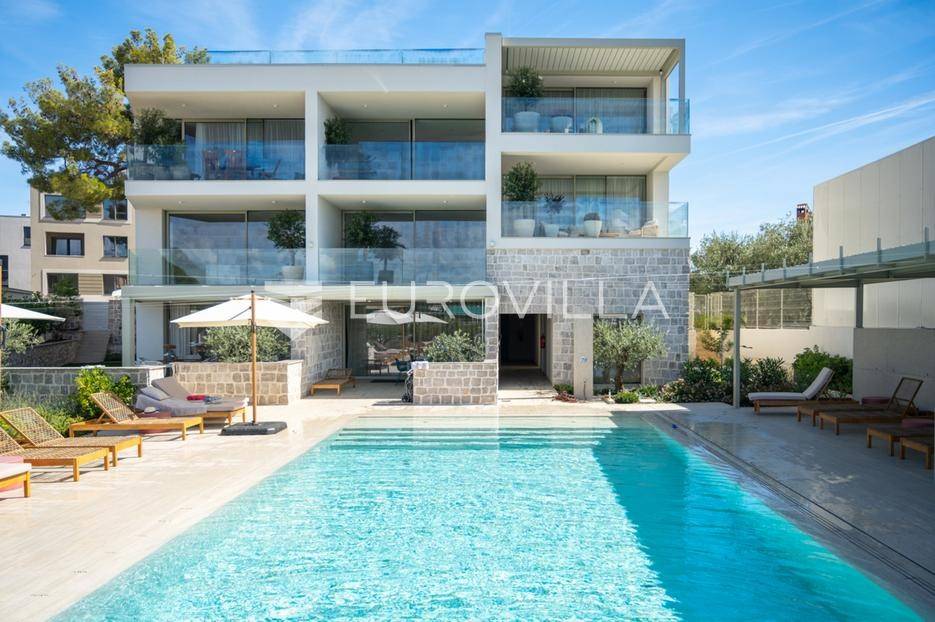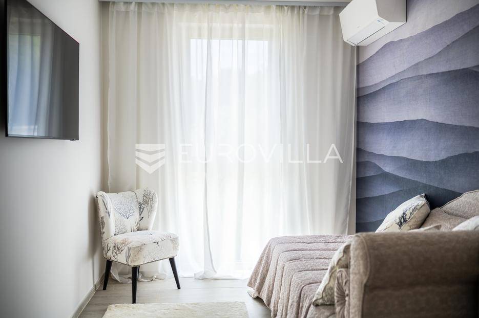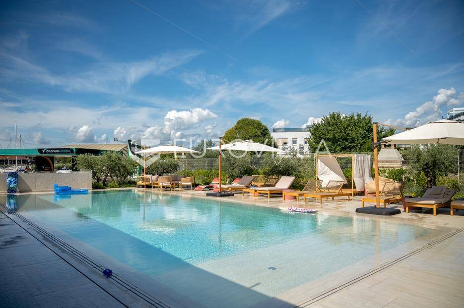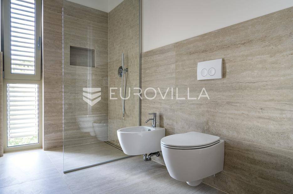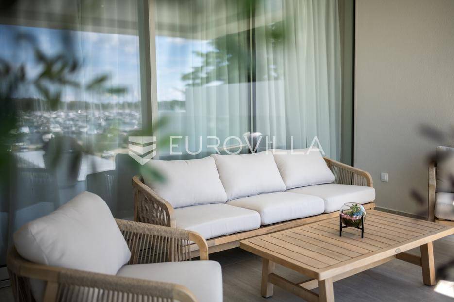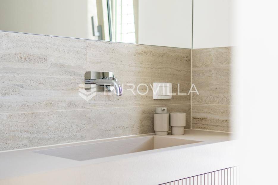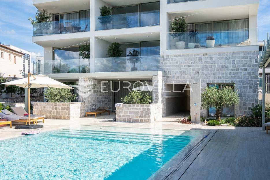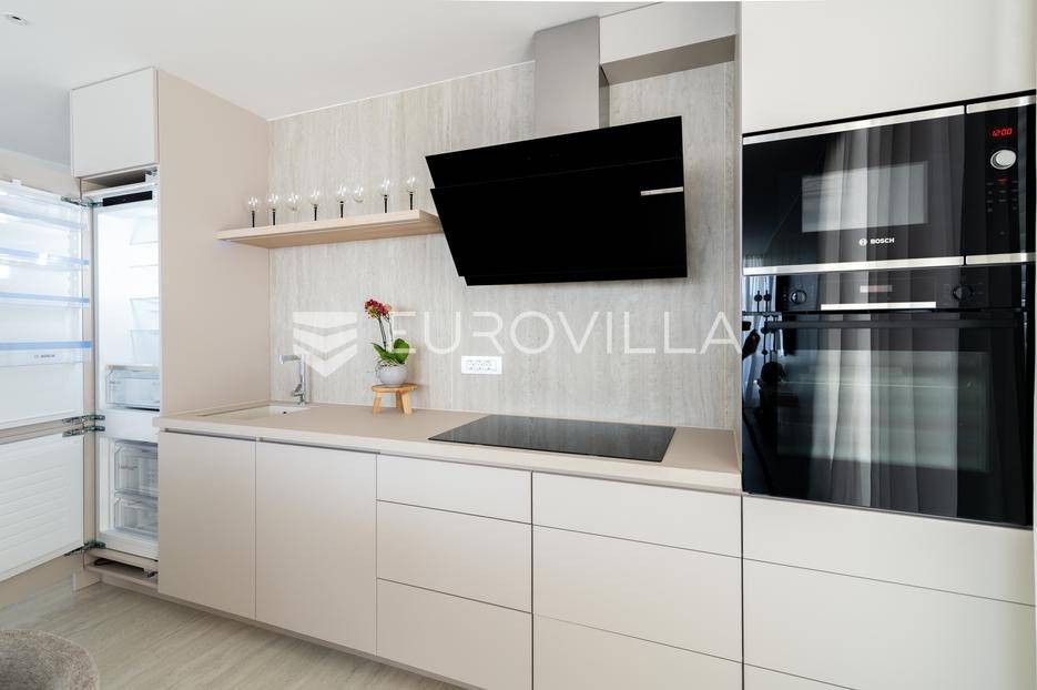 U ponudi je luksuzni stan površine 125,75 m² smješten na prvom katu moderne zgrade novije gradnje s ukupno osam stambenih jedinica i liftom.Stan je potpuno uređen, moderno namješten i opremljen visokokvalitetnim Bosch uređajima te se prodaje kompletno namješten. Posebna pažnja posvećena je funkcionalnosti, kvaliteti materijala i udobnosti stanovanja.Sastoji se od:ulaznog hodnikaostave s perilicom rubljagostinjskog WC-amaster spavaće sobe s vlastitom kupaonicom i izlazom na natkriveni balkondvije dodatne spavaće sobe sa zajedničkom kupaonicomprostranog open space prostora koji obuhvaća kuhinju s otokom, blagovaonicu i dnevni boravak s izlazom na natkrivenu terasu s pogledom na moreStan je opremljen podnim grijanjem putem dizalice topline te s četiri klima uređaja, što osigurava maksimalnu udobnost tijekom cijele godine.Uz stan dolaze:dva parkirna mjestadodatna ostavazajedničko korištenje grijanog bazena sa slanom vodomsaunateretanaLokacija je iznimna - svega 50 metara od prekrasnih plaža. U neposrednoj blizini nalaze se kvalitetni restorani, kafići, šetnice, biciklističke staze, trgovina, škola, dječje igralište i svi ostali potrebni sadržaji za ugodan život ili luksuzan odmor.Nekretnina predstavlja idealan izbor za obiteljski život, ali i izvrsnu investiciju na atraktivnoj lokaciji uz more.Za više informacija i dogovor razgledavanja stojimo Vam na raspolaganju.... Više na eurovilla.hr, ID: 823425