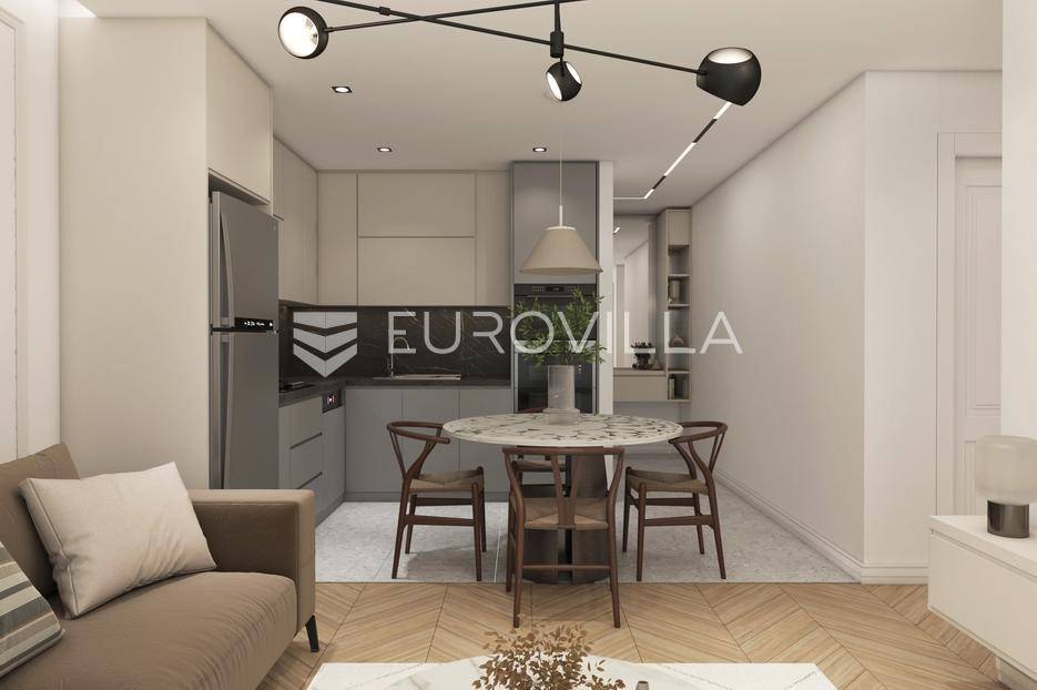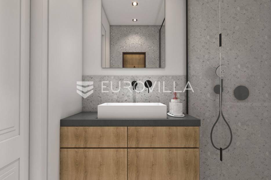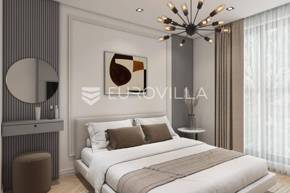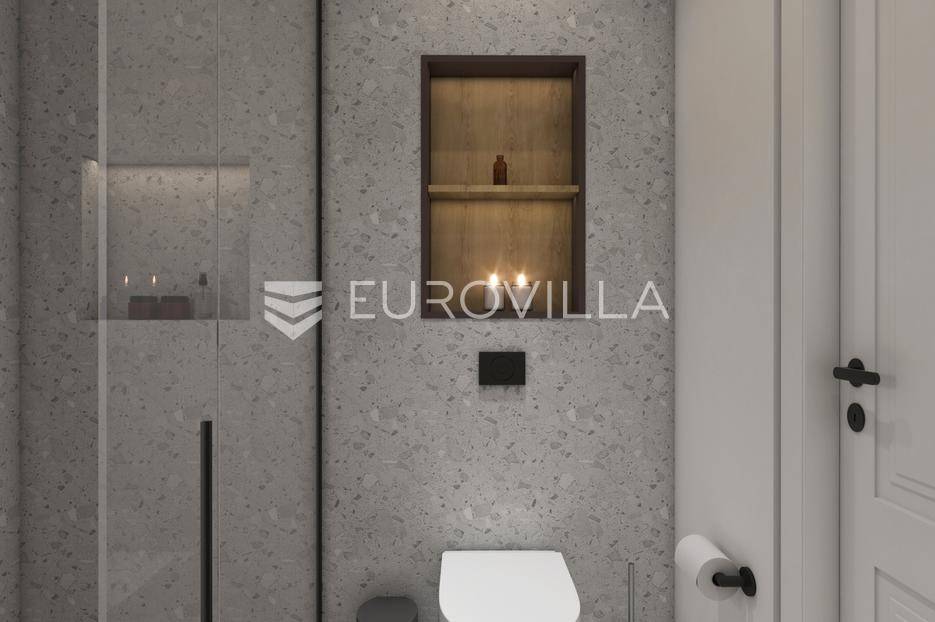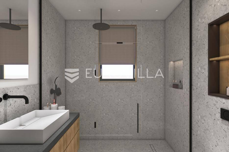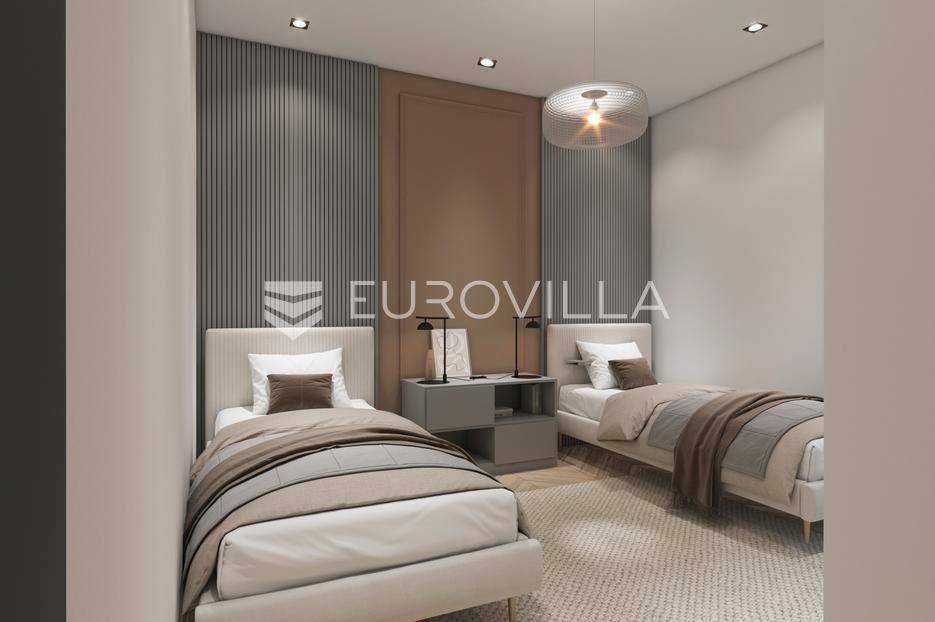 Nadomak mora i plaža u traženom elitnom turističkom naselju Volme na prvom katu smjestio se ovaj dvosobni stan ukupne stambene veličine od 62,34 m2.Stan se sastoji od ulaznog hodnika, dnevnog boravka, dvije spavaće sobe, kupatila, loggie, kuhinje s blagovaonicom i parking mjesta.Unutarnje uređenje stanova zadovoljavat će više kriterije kvalitete gradnje kao i visoki energetski certifikat. Vanjska stolarija - PVC s troslojnim staklima i aluminijskim roletama na elektromotor, fasada - demit na katu debljine 12 cm, u prizemlju 8 cm plus 2 cm kamen Travertino classico, hlađenje i grijanje - Mitsubishi klime te podno grijanje na struju u svim prostorijama s wi-fi termostatima, završne podne obloge - keramičke pločice Marca Corona.Nekretninu moguće kupiti putem stambenog kredita, vlasništvo uredno 1/1.Odlična prilika za investiciju.Za više informacija Vam stojimo na raspolaganju.... Više na eurovilla.hr, ID: 852266
