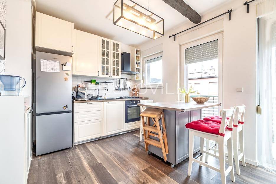 Zagreb, Gornje Vrapče, prodaje se namješteni četverosobni stan zatvorene površine 59 m², s garažom i balkonom s kojega se pruža lijepi pogled na Sljeme i grad, u novijoj stambenoj zgradi.Stan se sastoji od dnevnog boravka s kuhinjom, tri spavaće sobe, kupaonice, hodnika i i balkona. Pripada mu garaža. Stan se prodaje namješten s aparatima, namještajem te dvije klime.Lokacija stana je vrlo dobra, na mirnoj lokaciji, u blizini javnog prijevoza, a povišena pozicija mu omogućava ugodan pogled.Za ostala pitanja stojimo Vam na raspolaganju.... Više na eurovilla.hr, ID: 917122