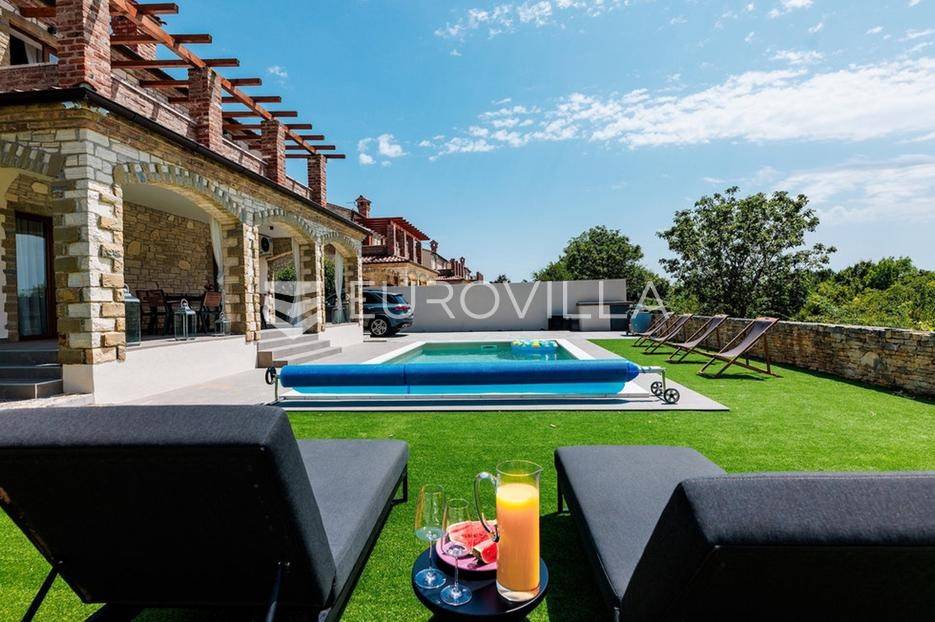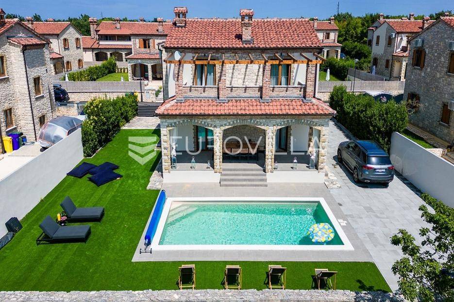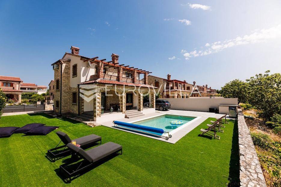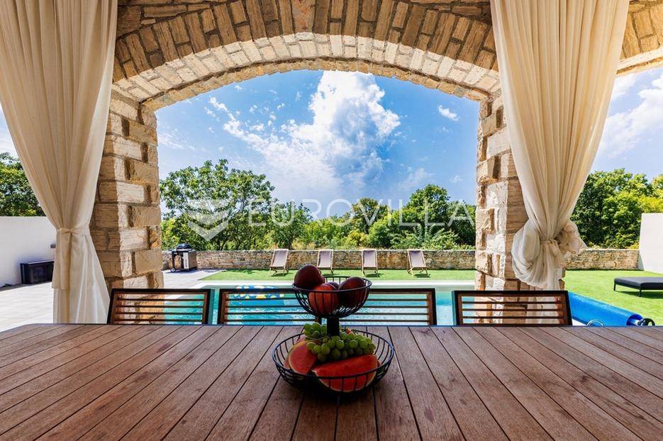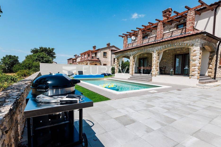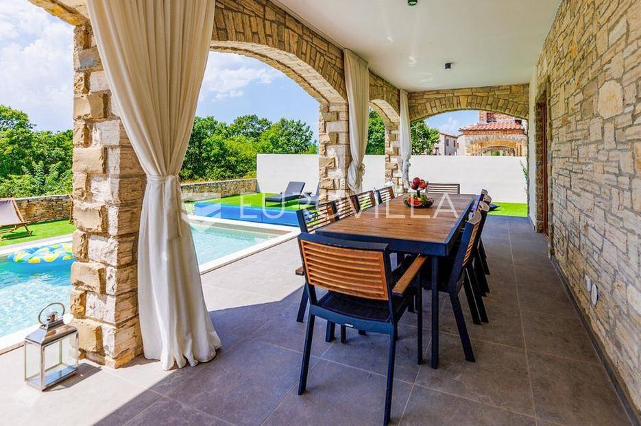 U samom srcu istre na mirnoj lokaciji smještena je ova moderna kamena kuća koja se prostire na dvije etaže ukupne stambene površine od 156 m2, nalazi se na okućnici ukupne veličine od 535 m2.Prizemlje se sastoji od ulaznog hodnika, radne sobe, wc-a, prostranog dnevnog boravka s kuhinjom i blagovaonom po open space konceptu gdje imate direktan izlaz na vanjsku terasu i vrt na kojem se nalazi već spomenuti grijani bazen veličine od 32 m2, roštilj i sunčalište.Na katu se nalaze tri spavaće sobe s dva kupatila te velika terasa s koje imate direktan pogled na prirodu koja Vam pruža ova lokacija nekretnine.Nekretnina sadrži ukupno dvije klimatske jedinice, jedna po svakoj etaži te kamin u dnevnom boravku.Zbog blizine svih sadržaja i većih turističkih mjesta, ova nekretnina i lokacija idealna je turistički najam ili za obiteljski život.Kuća je u uspješnom turističkom najmu te kao takva je siguran povrat investicije dok zbog privatnosti koju pruža mogla bi nekome biti dom iz snova ili oaza za odmor iz snova.Za više informacija slobodno nas kontaktirajte.... Više na eurovilla.hr, ID: 918353