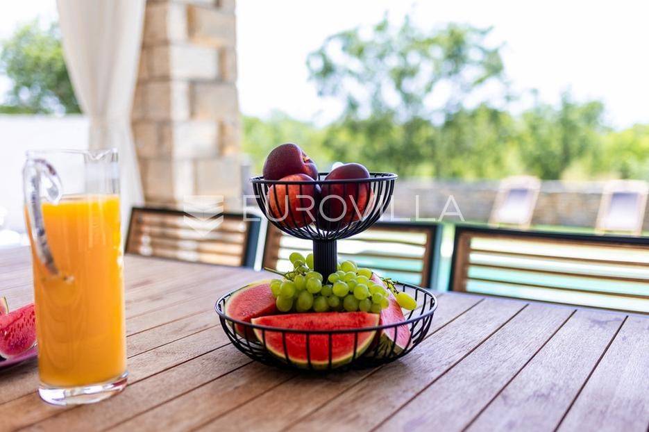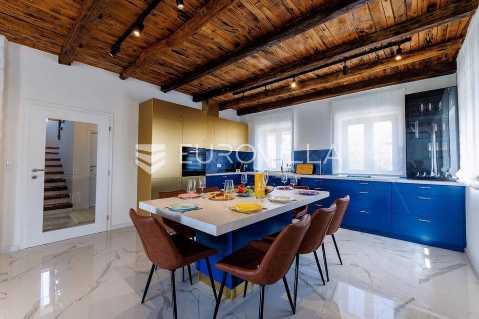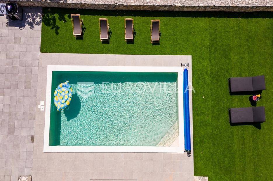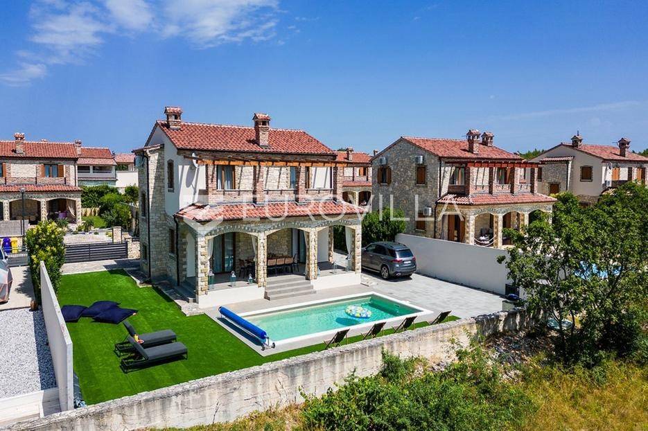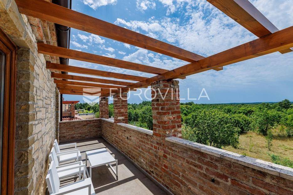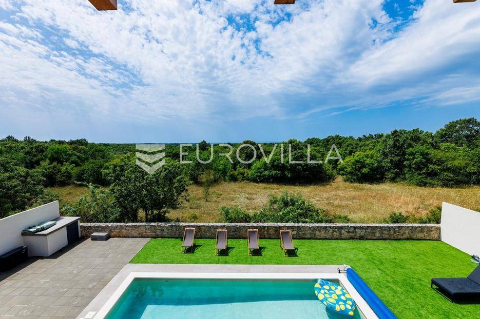 U samom srcu istre na mirnoj lokaciji smještena je ova moderna kamena kuća koja se prostire na dvije etaže ukupne stambene površine od 156 m2, nalazi se na okućnici ukupne veličine od 535 m2.Prizemlje se sastoji od ulaznog hodnika, radne sobe, wc-a, prostranog dnevnog boravka s kuhinjom i blagovaonom po open space konceptu gdje imate direktan izlaz na vanjsku terasu i vrt na kojem se nalazi već spomenuti grijani bazen veličine od 32 m2, roštilj i sunčalište.Na katu se nalaze tri spavaće sobe s dva kupatila te velika terasa s koje imate direktan pogled na prirodu koja Vam pruža ova lokacija nekretnine.Nekretnina sadrži ukupno dvije klimatske jedinice, jedna po svakoj etaži te kamin u dnevnom boravku.Zbog blizine svih sadržaja i većih turističkih mjesta, ova nekretnina i lokacija idealna je turistički najam ili za obiteljski život.Kuća je u uspješnom turističkom najmu te kao takva je siguran povrat investicije dok zbog privatnosti koju pruža mogla bi nekome biti dom iz snova ili oaza za odmor iz snova.Za više informacija slobodno nas kontaktirajte.... Više na eurovilla.hr, ID: 918353