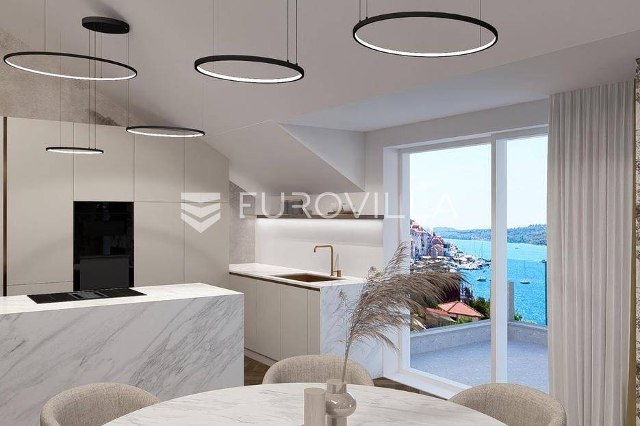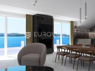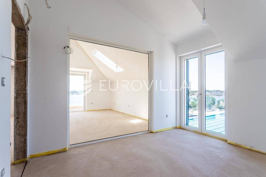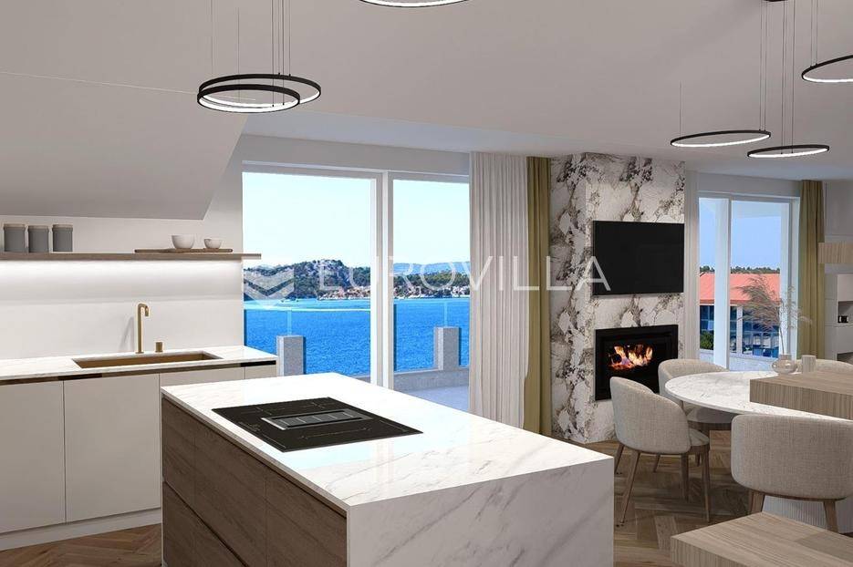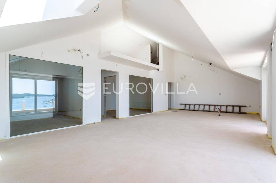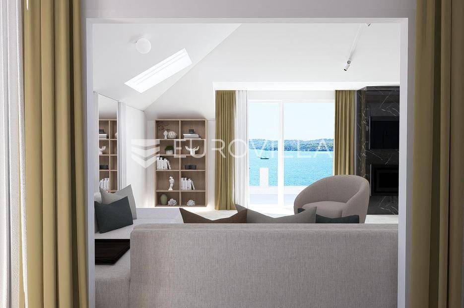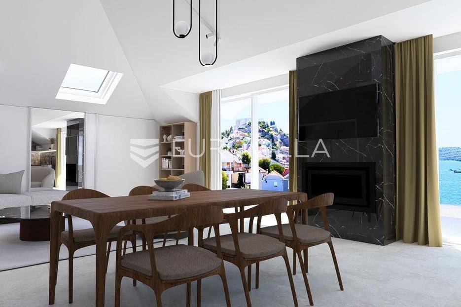 Šibenik, plaža Banj, prekrasan prekrasan penthouse na samoj plaži, neto korisne površine 138,82 m². Stan se nalazi na trećem katu potpuno renovirane zgrade s liftom, prvi red do mora. Pripada mu jedno parkirno mjesto, te je stanarima dostupan i veliki javni parking. Površina zatvorenog prostora je 131,08 m², a površina terase je 20,07 m².Stan se sastoji od dnevnog boravka s kuhinjom i blagovaonicom, tri spavaće sobe od kojih jedna ima privatnu kupaonicu i walk-in ormar, jedne zasebne kupaonice, te galerije koja može biti spavaća soba ili prenamijenjena u nešto drugo. Iz dnevnog boravka izlazi se na veliku natkrivenu terasu s pogledom na more i na stari grad. Svaka prostorija ima klima uređaj, te stan ima ugrađeno i podno grijanje na dizalicu topline. Kupac ima mogućnost odabira pločica/parketa.Stan se nalazi na odličnoj lokaciji, odmah do plaže Banj. Svi bitni sadržaji su u blizini stana.Za sve ostale informacije stojimo na raspolaganju.... Više na eurovilla.hr, ID: 937781