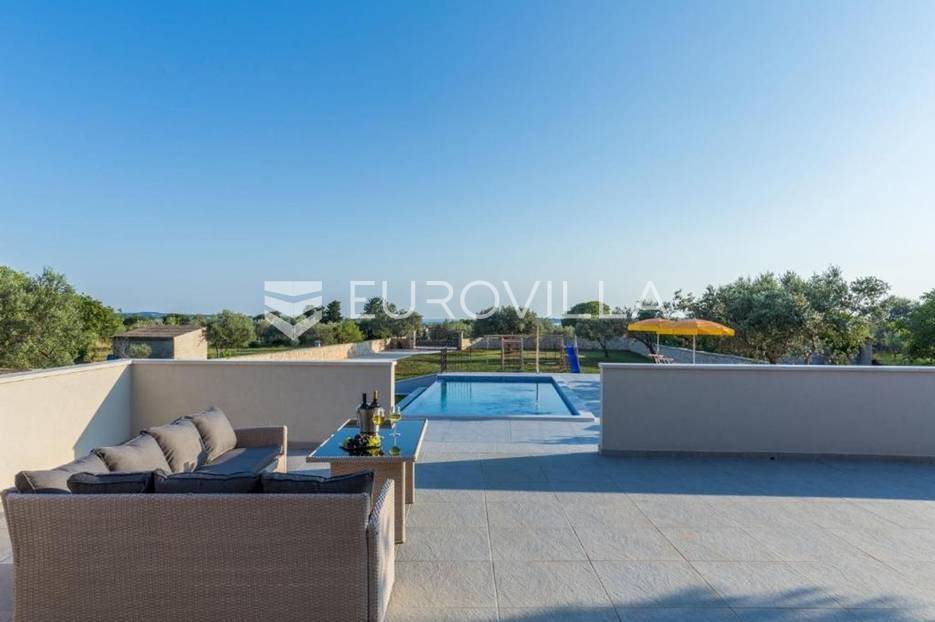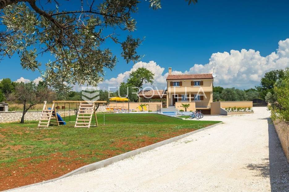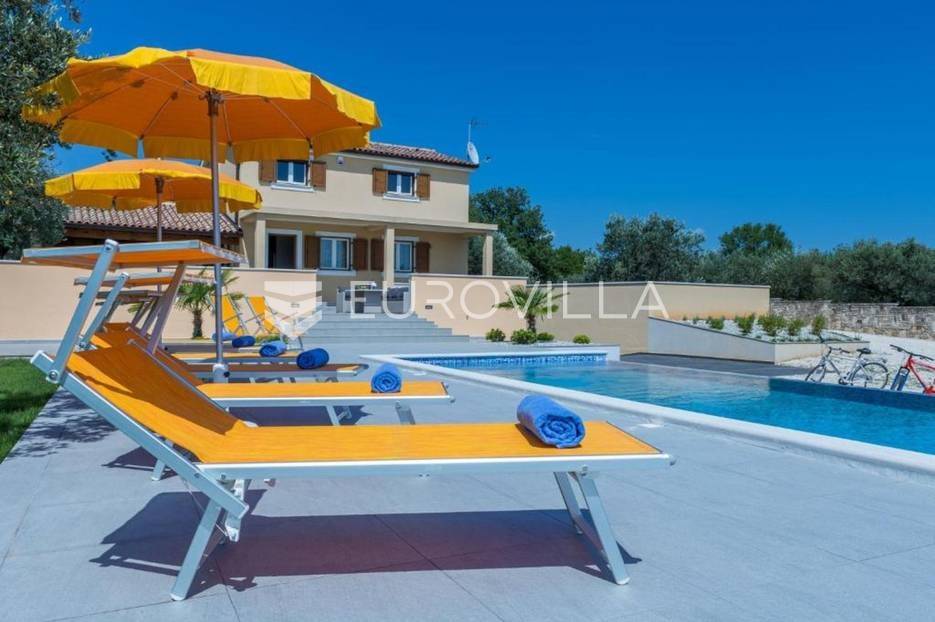 Ova prekrasna samostojeća villa s bazenom smjestila se u poznatoj Fažani, jednom od najljepših obalnih mjesta na jugozapadu Istre. Fažana nudi nešto što niti jedno mjesto u Istri ne može, a to je direktan pogled na Nacionalni park Brijuni. Taj zadivljujući pogled na prekrasno netaknuto otočje zasluženo pruža jedno zadivljujuće iskustvo te nije ni čudo da je Fažana jedna od najtraženijih lokacija za odmor ili stanovanje u cijeloj Istri.Vila je izgrađena na okućnici od 2237 m2, i to samo 700 m od prve predivne plaže. Pošto je villa smještena na samom rubu naselja te je okružena prirodom i zelenilom ona vam pruža potpunu privatnost i komfor. Villa ima 180 m2 stambene površine raspoređenih na prizemlje i kat te je u suterenu smještena garaža za vašeg limenog ljubimca. Na katu ville smjestile su se tri spavaće sobe u kojima će te uživati dok gledate na Brijunski arhipelag. U prizemlju objekta nalazi se prostrani dnevni boravak sa kuhinjom rađenu po mjeri, luksuznom kupaonicom, blagovaonicom i izlazom na veliku terasu, bazen i uređenu okućnicu nekretnine.Naglasak na mikrolokaciju, top destinacija, vile u okrugu, blizina plaže, veoma tražena lokacija, pogled na more, Nacionalni park Brijuni, blizina zračne luke, blizina autoputa.... Više na eurovilla.hr, ID: 948257