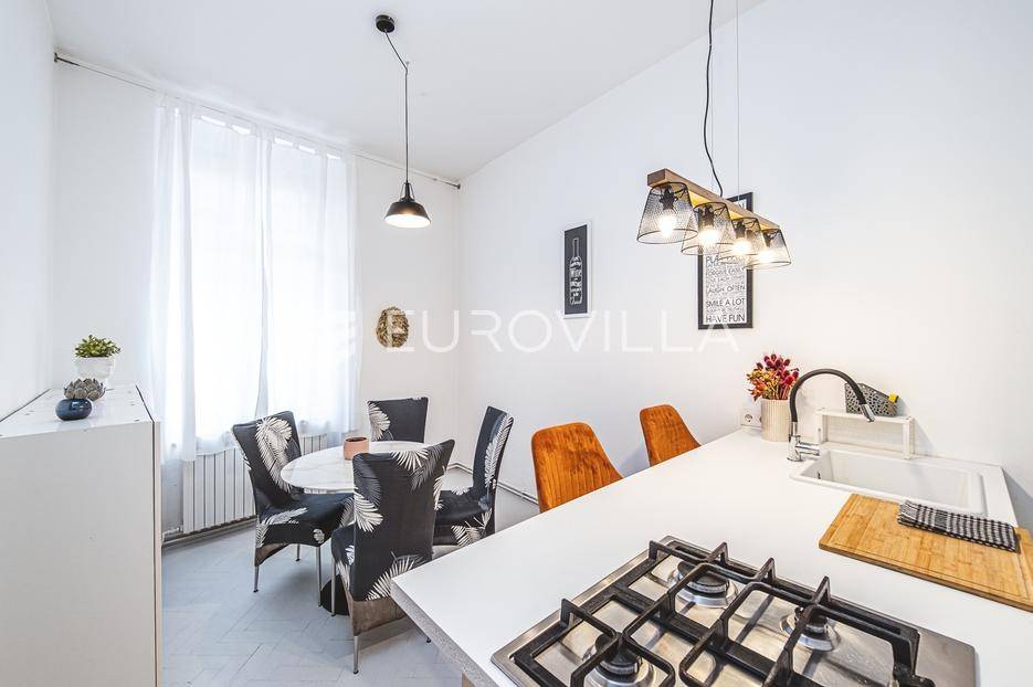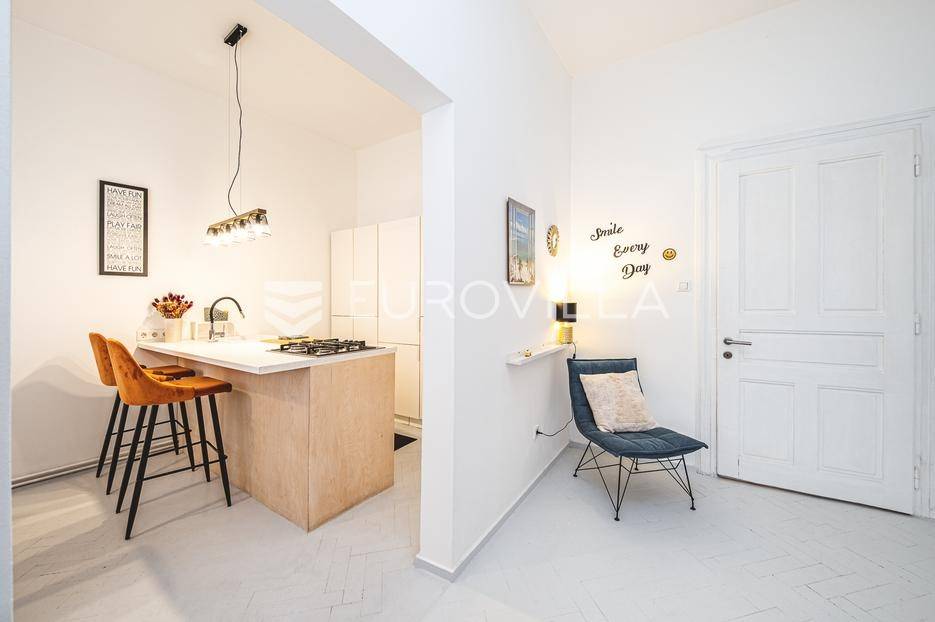 Zagreb, centar, Palmotićeva ulica, prekrasan dvosoban građanski stan u visokom prizemlju kompletno uređene zgrade. Veličine je 60.28 m2 sa spremištem/drvarnicom od 3 m2. Stan se sastoji od velikog ulaznog hodnika, kuhinje s blagovaonicom te dnevnog boravka, kupaonice s toaletom, malog spremišta/ugradbenog ormara, spavaće sobe s garderobom i balkonom. Dvostrane je orijentacije istok-zapad. Pričuva na zgradi je 38 eura, a ostale režijski troškovi su po potrošnji (struja, voda i gradski plin). Zgrada je kompletno obnovljena 2021. godine kada su rekonstruirani dimnjaci i krov; a 2022. godine je postavljena nova fasada, uređeno je stubište i zajednički prostori. Stan je kompletno adaptiran i renoviran 2019. godine, a 2022. su dodatno uređeni podovi i kupaonica. Izuzetno dobra mikrolokacija, nedaleko parka Zrinjevac, sveučilišta Vern, trgovine, glavnog kolodvora.... Vlasništvo je uredno 1/1, a nekretnina ima svu dokumentaciju za financiranje putem kredita. Sve dodatne informacije na upit. ... Više na eurovilla.hr, ID: 950546
