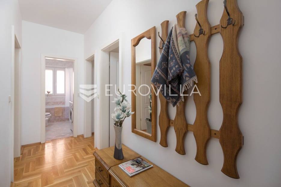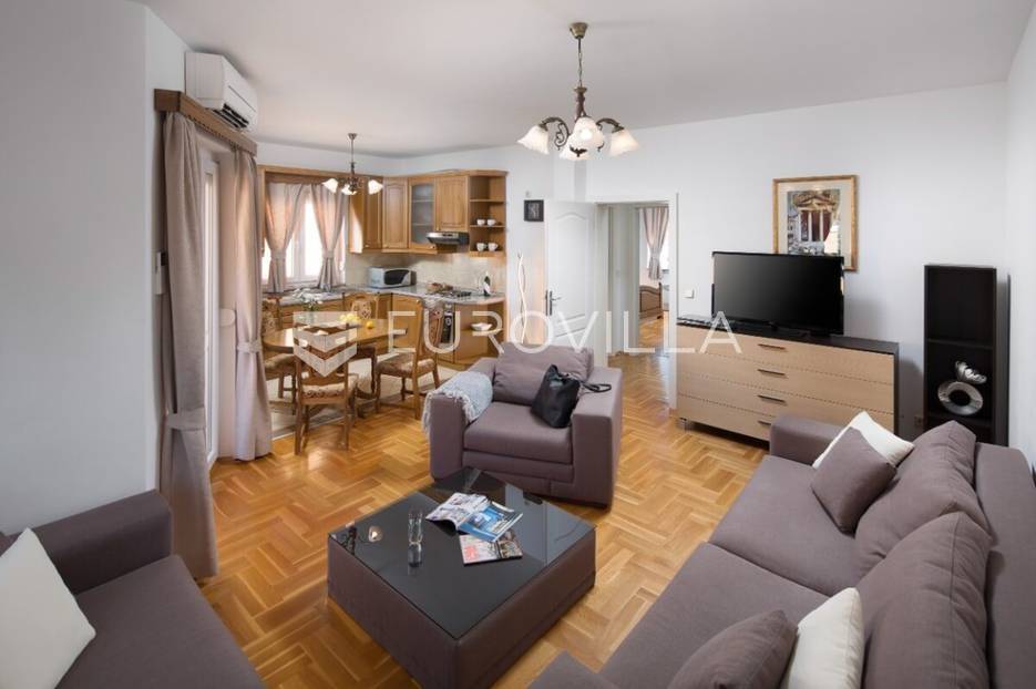 Istra, Medulin, na prodaju prostrani stan u višestambenoj zgradi na 600 metara od mora.Dvosoban stan 70m2, nalazi se u stambenoj zgradi na lijepoj i mirnoj lokaciji u blizini centra Medulina, svega nekoliko stotina metara od mora i plaže.Desetak kilometara južno od Pule nalazi se Medulin - središte turističkog života, blizina aerodroma, većih trgovačkih centara, plaže te ostalih sadržaja.Stan se sastoji se od dnevnog boravka, kuhinje i blagovaonice, dvije spavaće sobe, kupaonice i velikog balkona. Stan se prodaje kompletno namješten i opremljen aparatima poput perilica rublja, hladnjaka, pećnice, mikrovalne pećnice, klima uređajem u dnevnom boravku te norveškim radijatorima u svim prostorijama.Hrastov parket postavljen je u dnevnom boravku, sobama i hodniku dok je keramika u kupaonici u kuhinji.U stanu je instaliran protupožarni alarm kao i alarm protiv poplave.Stan ima svoje parkirno mjesto.Za dodatna pitanja stojimo Vam na raspolaganju.... Više na eurovilla.hr, ID: 966482