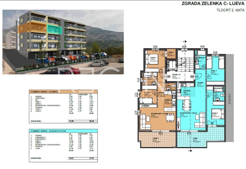 Die Zweizimmerwohnung befindet sich in einem neuen Gebäude in attraktiver Lage in Makarska. Sie befindet sich in einem modernen Neubau mit Aufzug und ist ideal für Paare, kleinere Familien oder als Investition für touristische Vermietungen. Die Wohnung hat eine Nettofläche von 88 m² und besteht aus einem Wohnzimmer mit Küche und Essbereich, zwei Schlafzimmern, zwei Badezimmern und einer geräumigen Loggia. Das Wohnzimmer ist offen gestaltet, mit großen Glaswänden, die dem Raum viel natürliches Licht geben. Es gibt Fußbodenheizung im Wohnbereich, Klimaanlagen, PVC-Tischlerei und HST-Dreifach-Schiebewände. Die Oberflächenmaterialien sind hochwertig und an modernes Wohnen angepasst. Die Wohnung befindet sich in einem ruhigen Teil von Makarska, in der Nähe des Meeres und aller wichtigen Einrichtungen. Strände, Geschäfte und Restaurants sind nur wenige Minuten entfernt, was diese Immobilie sowohl für den Alltag als auch für die Vermietung während der Touristensaison sehr interessant macht. Das Gebäude ist fertiggestellt, die Dokumentation ist in Ordnung und der Einzug ist innerhalb von etwa zwei Monaten möglich. Für weitere Informationen zur Wohnung, zum Grundriss und zum Preis sowie zur Vereinbarung eines Besichtigungstermins kontaktieren Sie uns bitte.