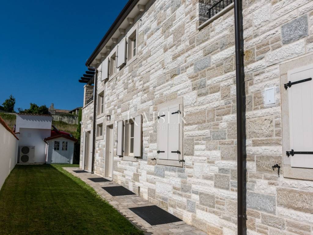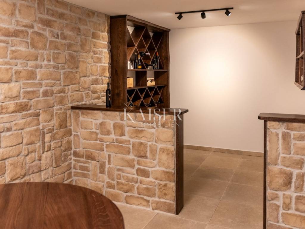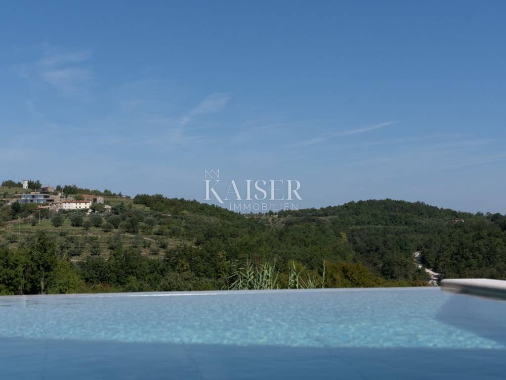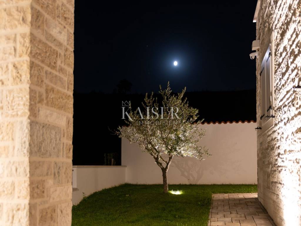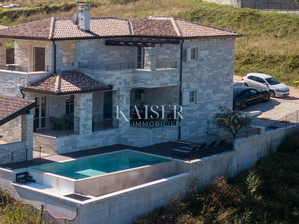 Kaiser Immobilien bietet diese neu erbaute Steinvilla auf einem der schönsten Hügel in Momjan an, geschaffen für Genießer und Liebhaber wahrer rustikaler Eleganz. Die Kombination aus traditioneller istrischer Architektur und modernem Luxus verleiht ihr eine besondere, fast greifbare Energie – warm, beruhigend und zugleich luxuriös.