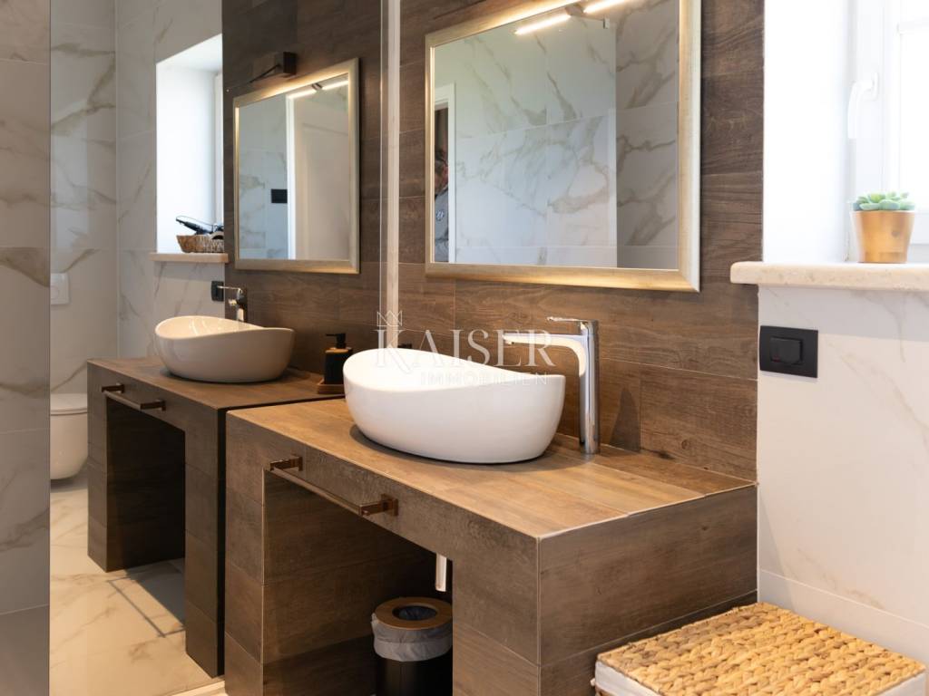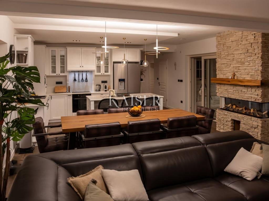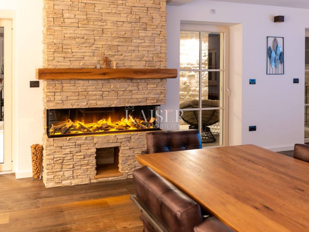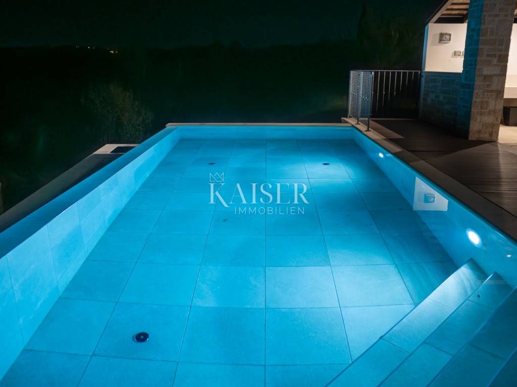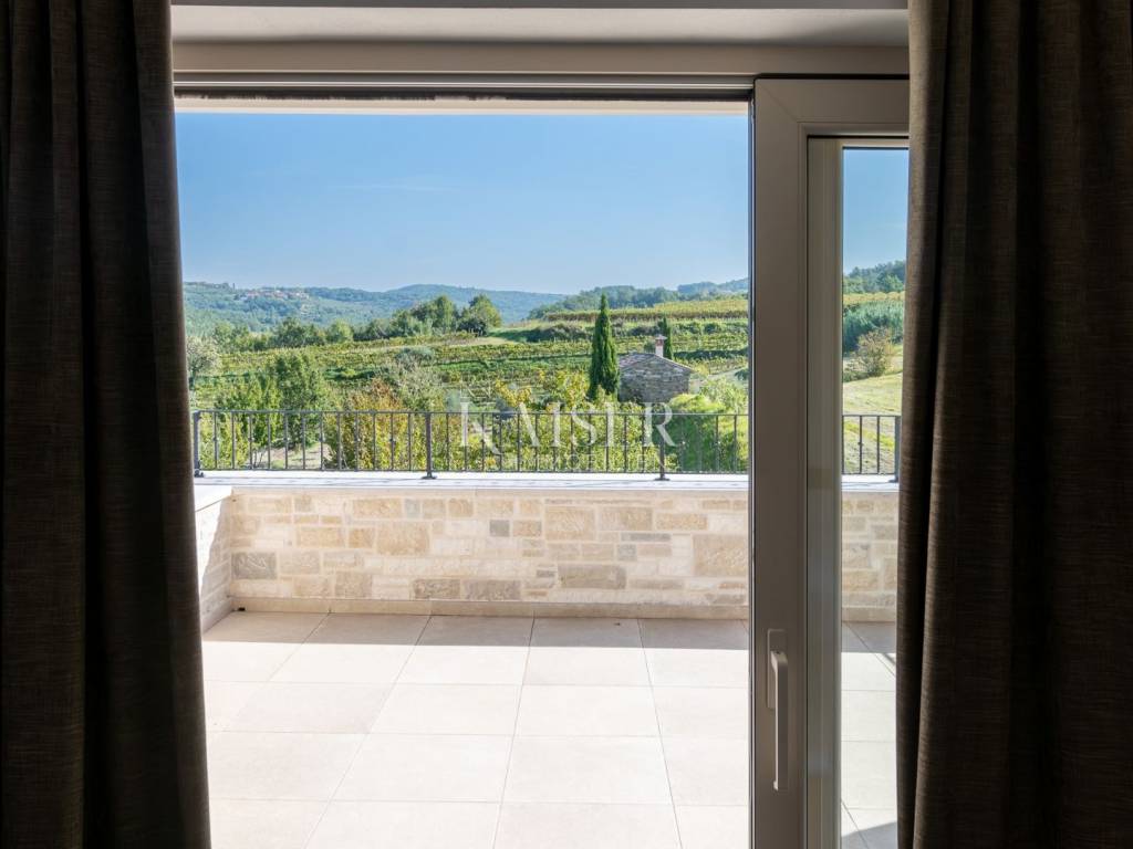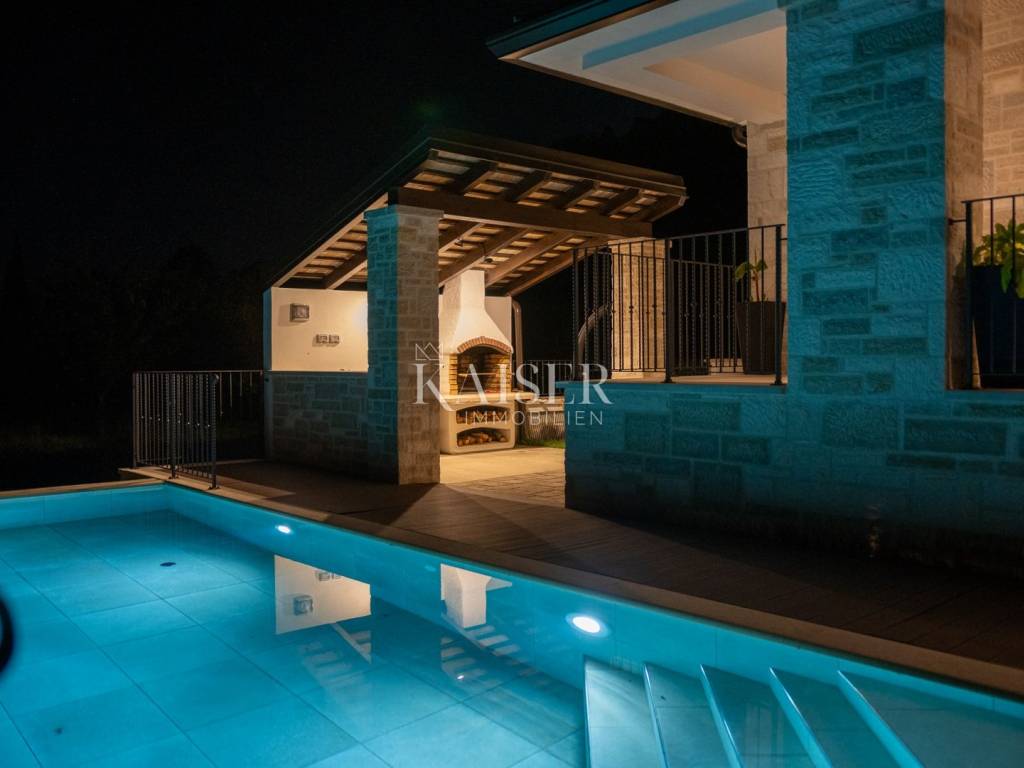 Kaiser Immobilien bietet diese neu erbaute Steinvilla auf einem der schönsten Hügel in Momjan an, geschaffen für Genießer und Liebhaber wahrer rustikaler Eleganz. Die Kombination aus traditioneller istrischer Architektur und modernem Luxus verleiht ihr eine besondere, fast greifbare Energie – warm, beruhigend und zugleich luxuriös.