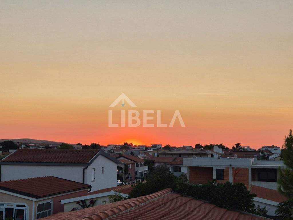 Kat - Vanjske stepenice s dvije strane objekta, velike terase oko cijelog objekta. Dva apartmana su identična s dvije spavaće sobe, kuhinja s dnevnim boravkom, kupaona.