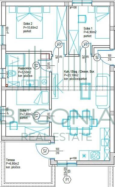 Ukupna korisna površina s pripadcima: 62,65 m Stanu pripadaju 2 parkirna mjesta.