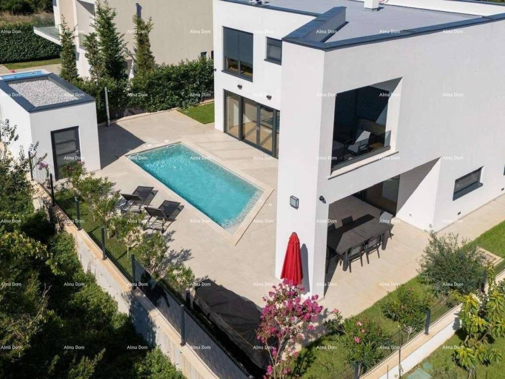 Die Immobilie ist im Mehrwertsteuersystem. Dieses wunderschöne Haus in Banjole ist eine perfekte Oase für Familien oder eine Investition in einen Wochenendurlaub. Die Villa bietet Komfort und Privatsphäre für alle Familienmitglieder. Sie besteht aus einem Erdgeschoss und einem Obergeschoss. Im Erdgeschoss befinden sich ein Technikraum, ein Badezimmer, ein geräumiges Wohnzimmer mit Essbereich und Küche. Große Fenster bieten einen Blick auf die Außenterrasse und den Pool. Innentreppen führen in das Obergeschoss des Hauses, wo sich 3 geräumige Schlafzimmer mit Badezimmern befinden (zwei Zimmer haben eine Terrasse). Der Garten ist mit vielen mediterranen Pflanzen wie Lavendel, Rosmarin, Oleander und alten mehrjährigen Olivenbäumen angelegt. Automatische Bewässerung. Parkplatz für 3 Autos. Automatische Tore zum Grundstück. Videoüberwachung und Alarmanlage. Video-Gegensprechanlage und elektronisches Türschloss mit Codeschloss. Eichenparkett mit Fußbodenheizung. BOSCH Klimaanlage in jedem Zimmer. Die Küche ist mit MIELE Haushaltsgeräten ausgestattet. MIELE Waschmaschine und Trockner. TV in jedem Zimmer. Pool mit 27 Quadratmetern - automatisch mit Elektrolyse. Genießen Sie die Sommertage am eigenen Pool, der ideal zum Entspannen oder für Partys mit Freunden ist. Die Lage bietet Nähe zu Stränden und allen notwendigen Annehmlichkeiten, während die Natur die Immobilie umgibt und eine perfekte Umgebung zum Leben schafft. Dieses Haus ist eine Gelegenheit, die Sie nicht verpassen möchten!